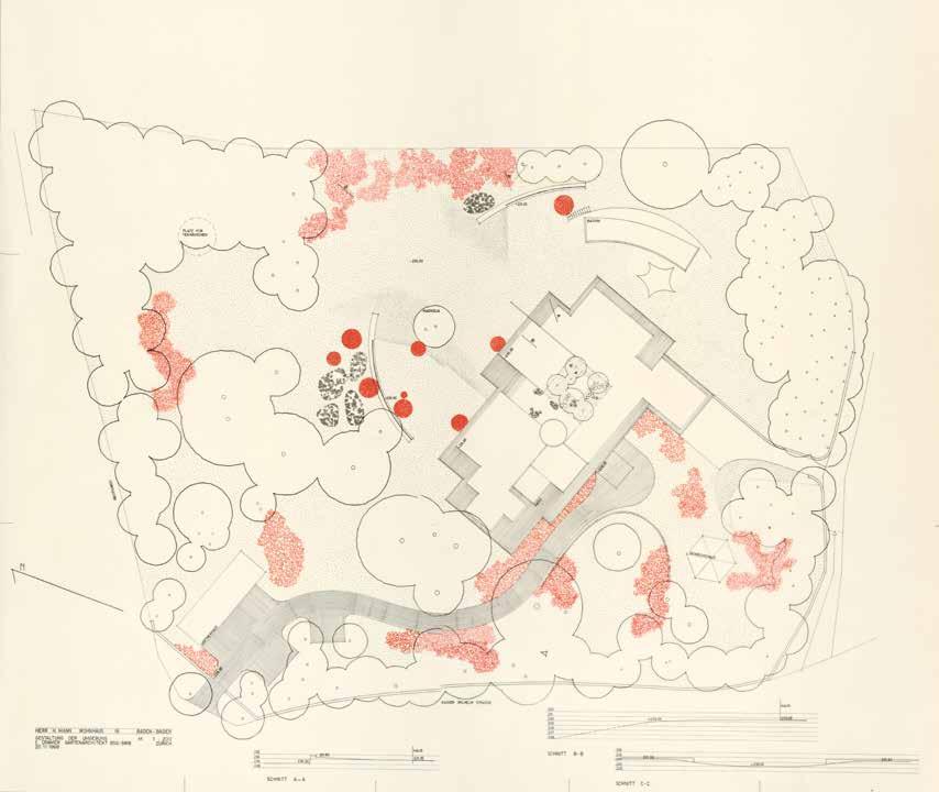 Federal Institute of Technology (ETH) on the Hönggerberg in Zurich [ → pp. 252, 253] . Or he would combine near-natural with purist creations, as in the gardens of the nurses’ accommodation at Bülach district hospital in 1962 [→ p. 244, bottom].