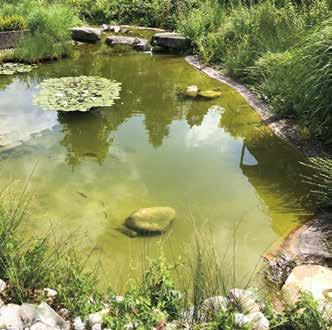 A pond crossed by stones à la japonaise is the centrepiece of the 1983 housing estate for the Swiss Life Insurance Company Pax in the town of Wohlen in Aargau.