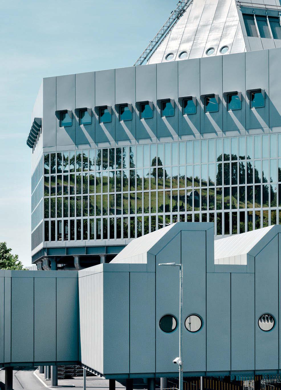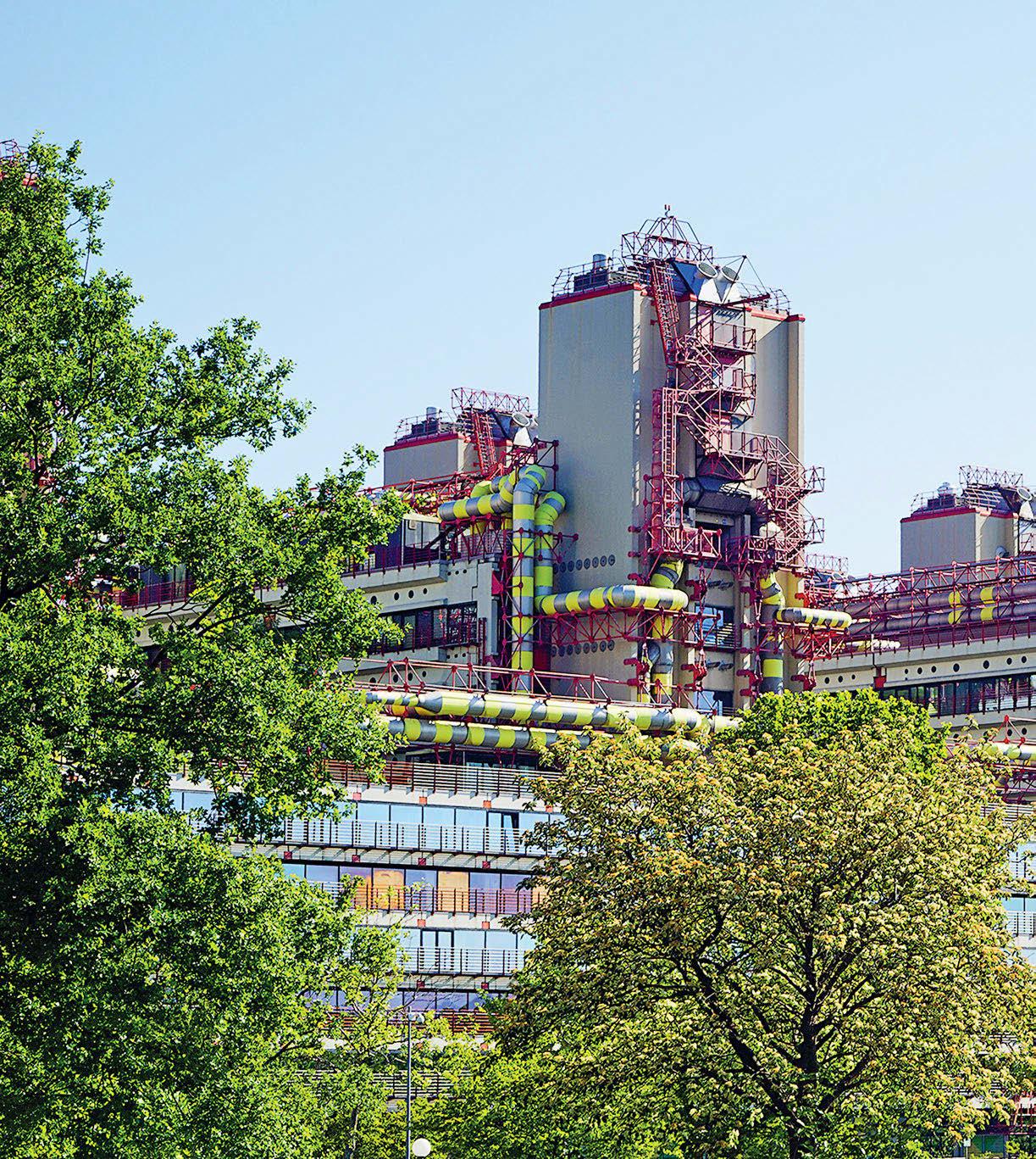 James Stirling’s project for the Library of the Faculty of History at the University of Cambridge (1963–1968) – characterised by the use of large glazed sides of a steel structure coordinated with opaque concrete and brick walls, resulting in a fragmented and transparent building of great scope – stands for one of the first British attempts to renovate the architectural practice by merging the latest technological advances into buildings. But it is the British art historian and critic Reyner Banham who was instrumental in shaping the influence of so-called British high-tech architecture while disseminating the work of Team 4 and historiographically coining the term as a ‘British phenomenon’. Writing mainly for Architectural Review magazine, Banham2 used his rhetoric and critical genius to emphasise the relationship between engineering and the modern avant-garde, becoming a unique chronicler of the movement. Following Nigel Whiteley, Norman Foster and Richard Rogers rose to prominence, Banham praised their Reliance Controls Building (with Su Brumwell and Wendy Cheesman, operating as Team 4), built in Swindon in 1967 and often called the first high-tech building, and Foster’s Sainsbury Centre for Visual Arts in Norwich (1974–1978). He touted the Parisian Centre Pompidou (1971–1977) by Rogers and Renzo Piano when it debuted and became ‘the monument of reference by which High-Tech Architecture is usually defined’. Subsequently, as the preeminent architects associated with high-tech matured to produce works such as Foster’s HSBC Building in Hong Kong (1983–1985) and Rogers’ Lloyd’s of London building (1978–1986), Banham lauded their completed works with renewed enthusiasm.3