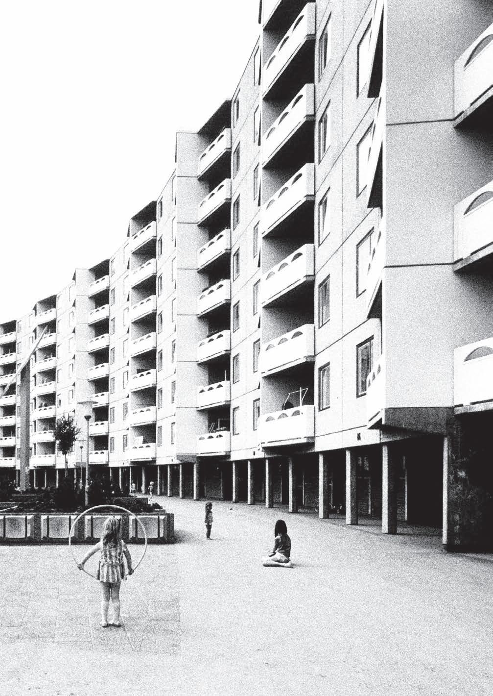 Identifying housing areas with particular needs and expected problems, which in turn are to be met and solved through extraordinary measures and strategies (often involving the reconfiguration and transformation of the built environment) suggests intriguing parallels with the Danish Ghettoplan (“Ghetto” package) from 2018.2 However, in terms of this book’s topic, architecture and welfare, I want to emphasize the explicit use of housing typologies and urban form as indicators of societal problems and criminality by a Swedish state authority. Several postwar mass housing estates built during the Miljonprogram era (1965–74) have been identified as vulnerable, and since the mid-1980s, subject to ambitious statefunded area-based interventions aiming to support their transformation and change. Under the name of modernization, sustainability, and restoration, Miljonprogram areas have been rebuilt and reconfigured to a larger or smaller extent. The scale of the public and market-led investment involved in such initiatives cannot be ignored. They suggest new types of political engagement in mass housing, involving new forms of financialization and architectural aesthetics, together with an explicit withdrawal from the universal tradition of Swedish housing policy established in the immediate postwar years—i.e., the aim of providing high-quality housing for all regardless of location or region.3