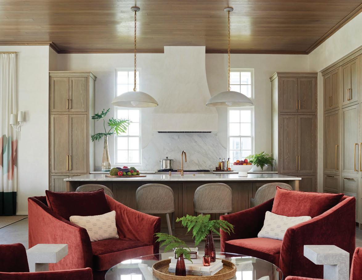 Paige Schnell and AK Porch Tisa of Tracery Interiors came on board to weigh in on nishes, xtures, and architectural ourishes. Responding to the owners’ desire for richer warm tones, Paige drew from a palette of cinnamon reds, deep pinks, forest greens, and slate blues.