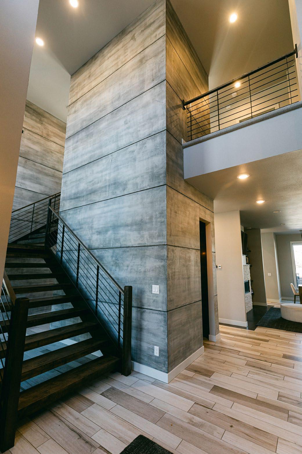 houses a year, but it went to like sixty, so he couldn’t keep up on the manufacturing of unique handrails. But we came up with this design that’s been our staple piece that goes into most of our homes.”