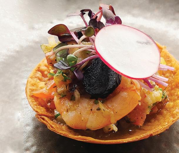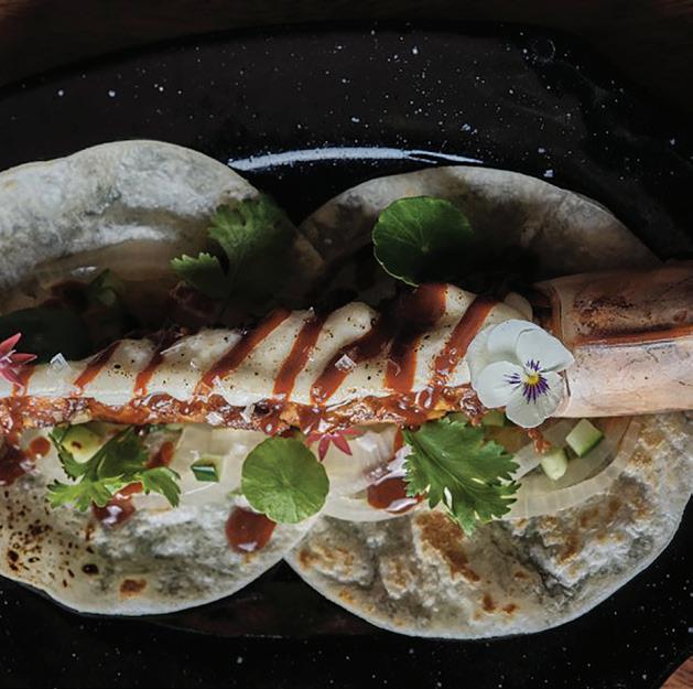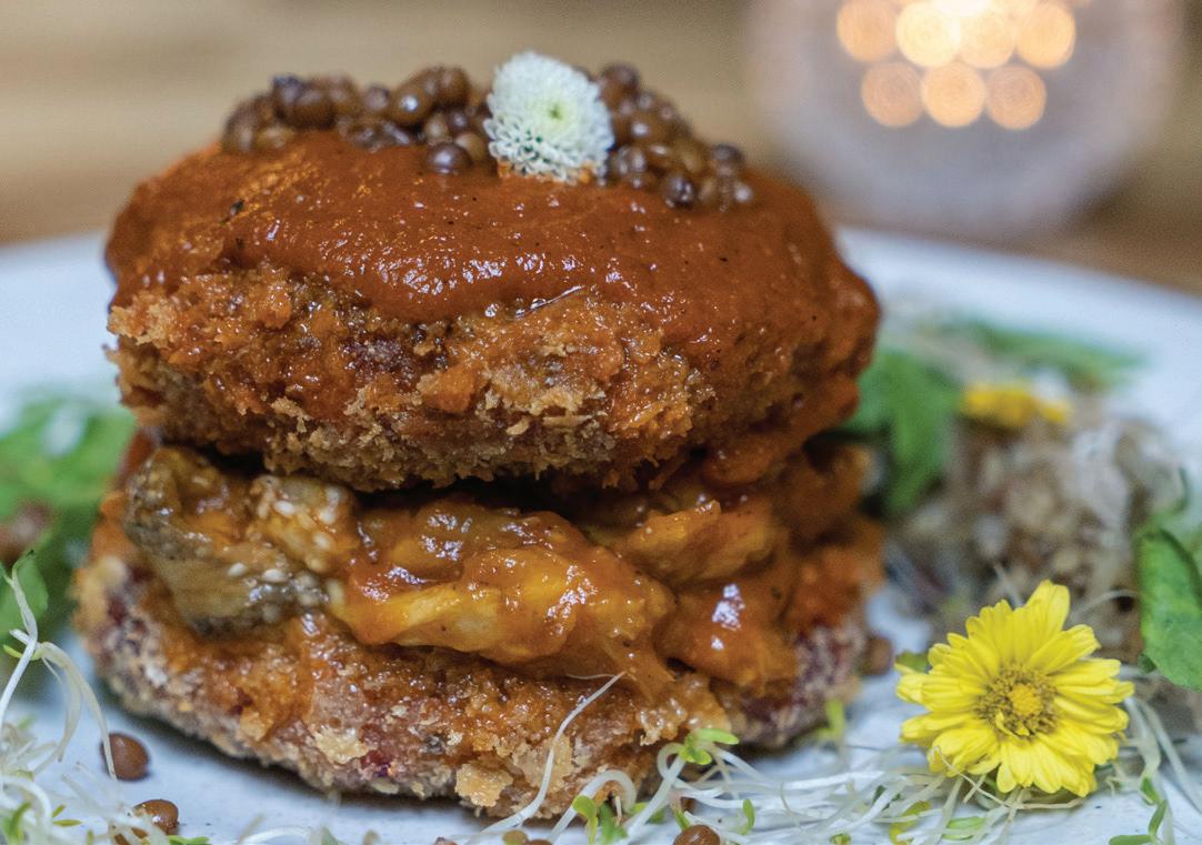 First up was The Earthling Café, which, despite its very young age (it was founded in 2022), has become a popular go-to spot for Bangkokians. As proven by their winning dishes, the team behind the establishment might be new to the scene, but they’re definitely not amateurs in the kitchen. Utilizing various pulses to create a main and a dessert dish, the judges were highly impressed by the chefs’ creativity.The first winning dish was a katsu composed of a filet made from chickpeas, lentils, mushroom, and oat milk, served in a bell pepperbased sauce and an eggplant on the side. The second winning dish appealed to the judges’ sweet tooth: a rich brownie made from black beans, cocoa powder, and coffee powder, and presented with a side of chocolate fudge made from chickpeas; this was served à la mode with a side of lima bean and soy ice cream.
