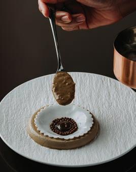 with Bengali kasundi (mustard sauce), Rangpur lime, and a bit of pickled ginger as a palate cleanser. The delicate Nagpuri saoji quail has a bit of a kick to it, and a hand-pulled chicken khurchan with nashi pear. There are two desserts to round off the meal, and the first is one you’ll want for your Insta, a rosebased dish that comes with a plate of Chiang Mai roses to smell as you scoop into a cool yoghurt falooda and basil seeds.