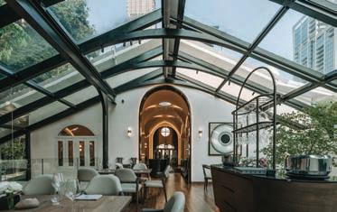 Luxury interior design brand Chanintr’s Thonglor-based restaurant in their showroom’s ground floor is a homey architectural dream. The menu at Café Craft is packed with brunch-friendly classics like avocado toast, the signature French toast with caramelized bananas, and their own olive oilbased homemade granola. The sharing cold cuts and Iberico platters are perfect for small groups, while heartier Thai and European mains are also available for a more filling meal — try the Mediterranean sea bass en papillote, the spicy pla salid fried rice, or their signature Café Craft khao tom. The drinks menu includes both cold and hot treats such as fresh lemonade, coldpressed juices, and various single-origin coffees.