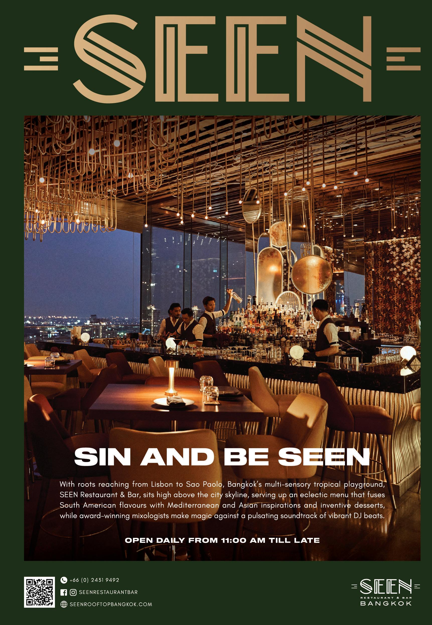 Soar above Bangkok’s glittering skyline at SEEN, a rooftop bar with panoramic city and river views. Binge on innovative South American-Asian cuisine and savor award-winning cocktails, crafted to the rhythm of live DJ sets, and finish with a flourish of delectable desserts.