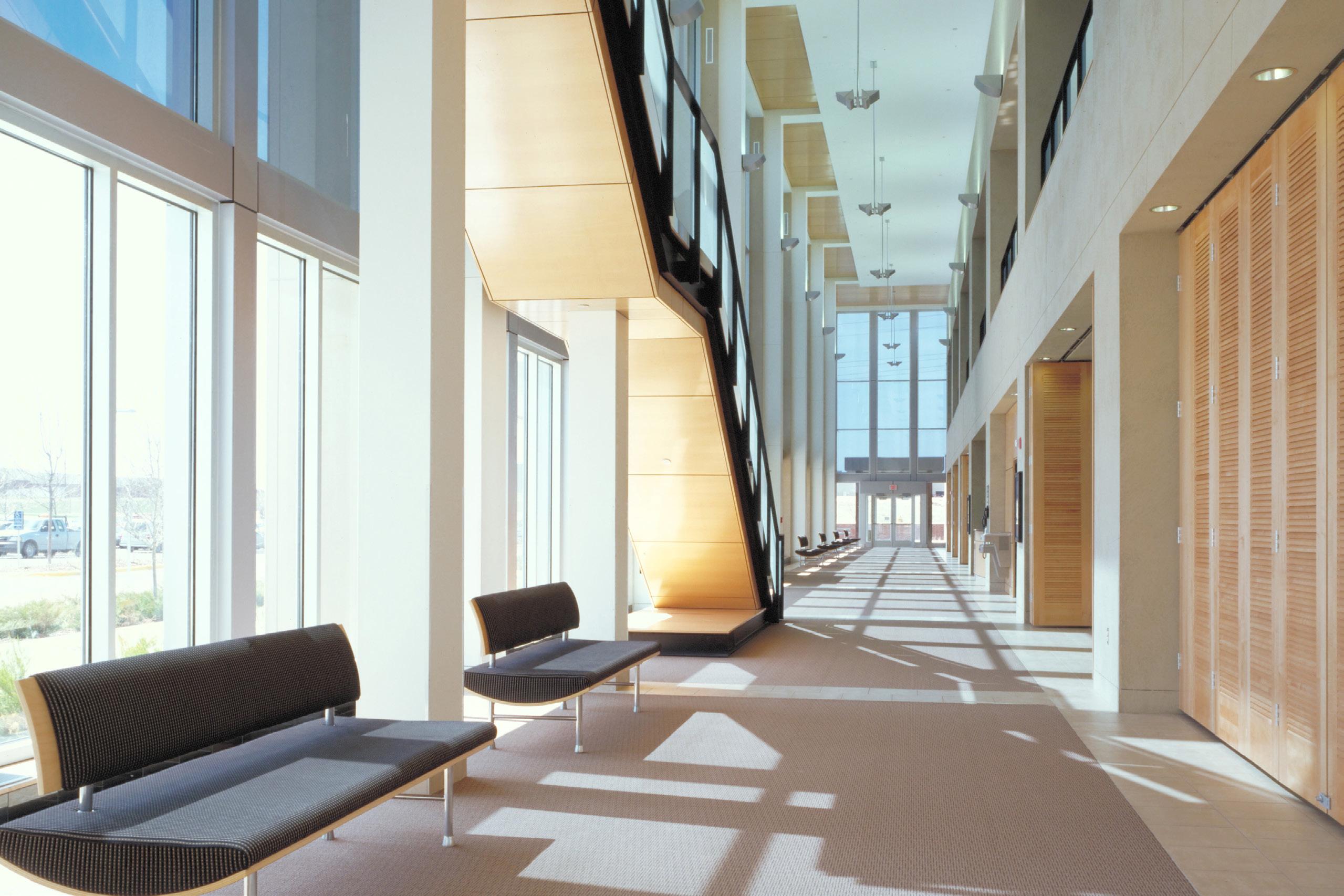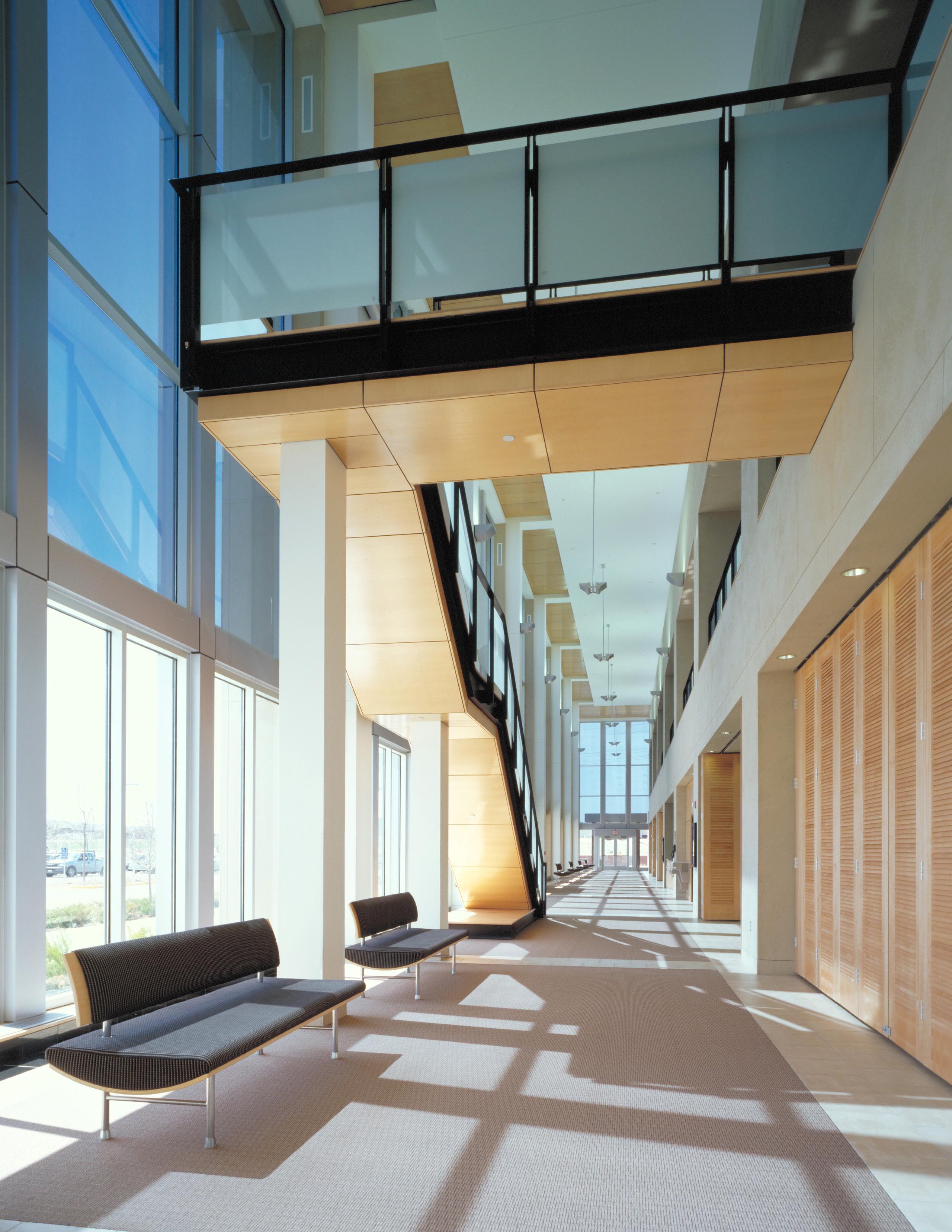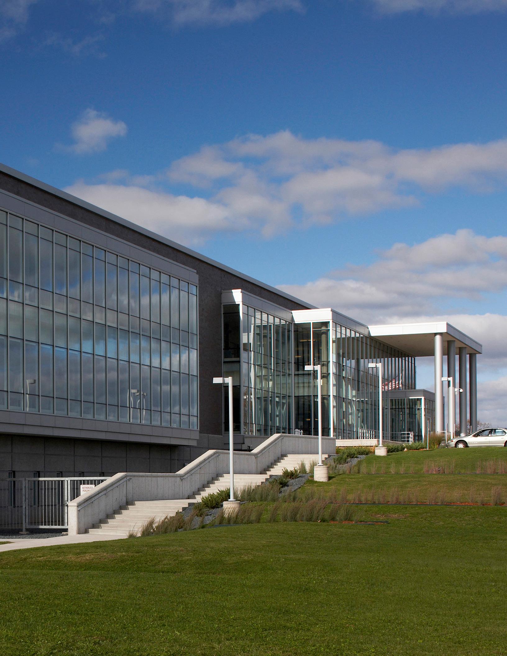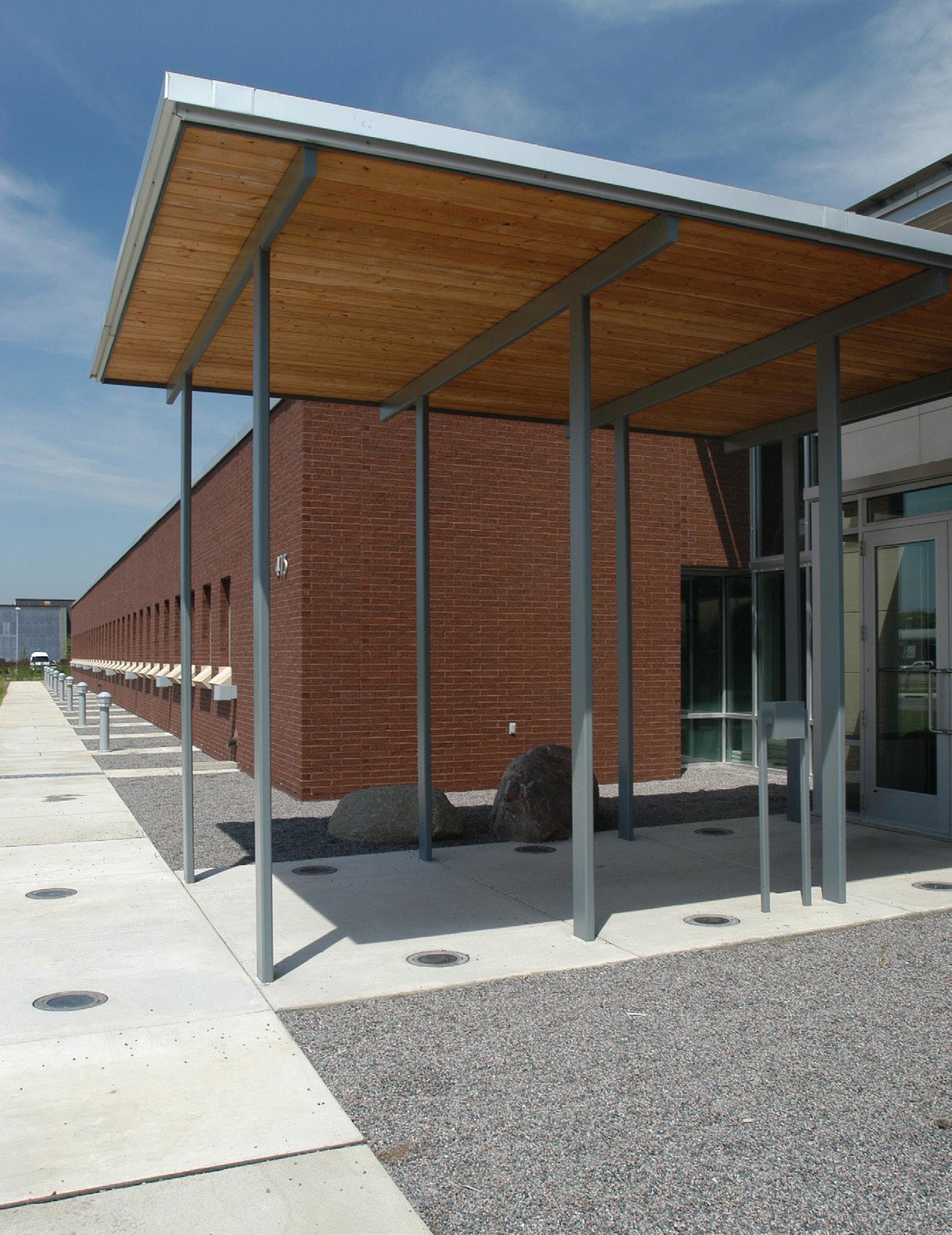 Extensive sustainable design and energy-saving strategies were incorporated in the project, including a geothermal HVAC system, daylighting throughout the regularly occupied portions of the building, on-site storm water treatment, and sustainable building material selection.
