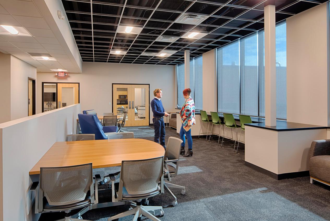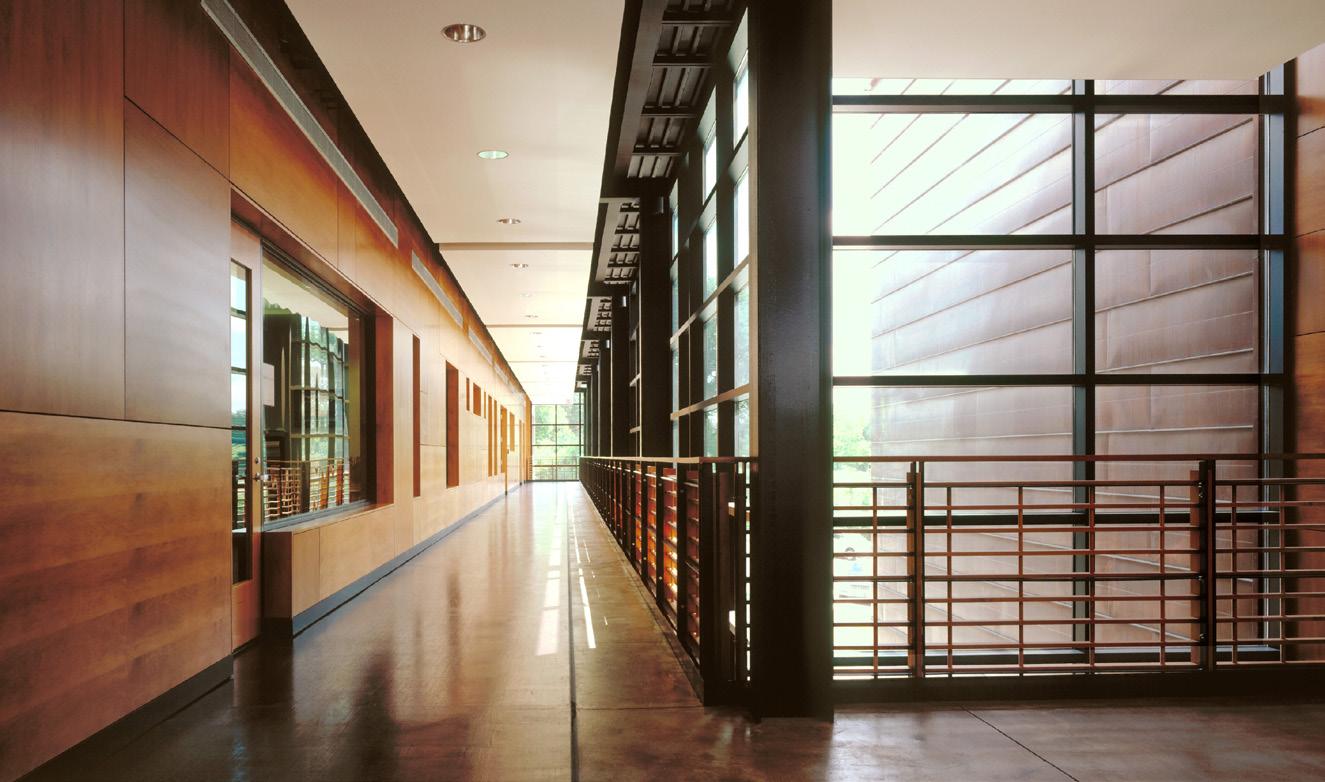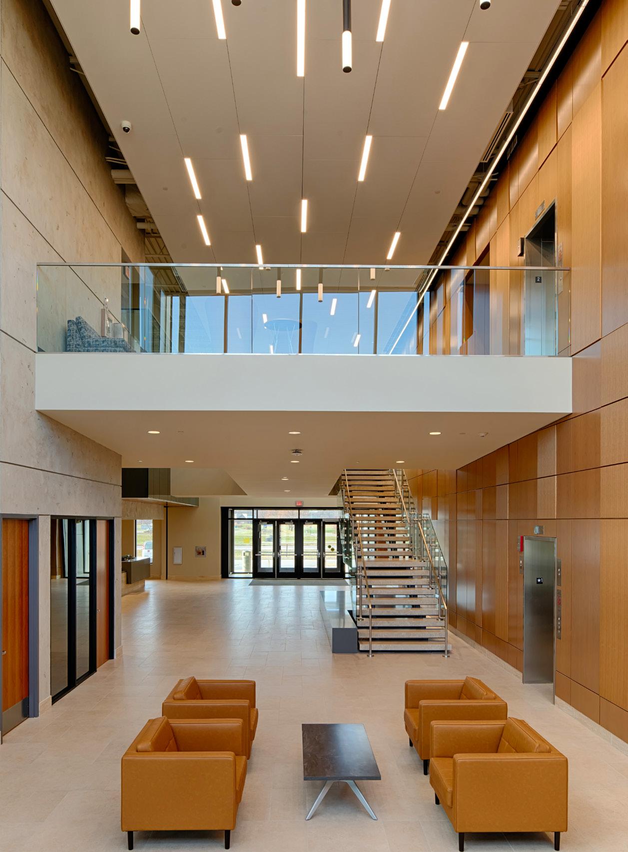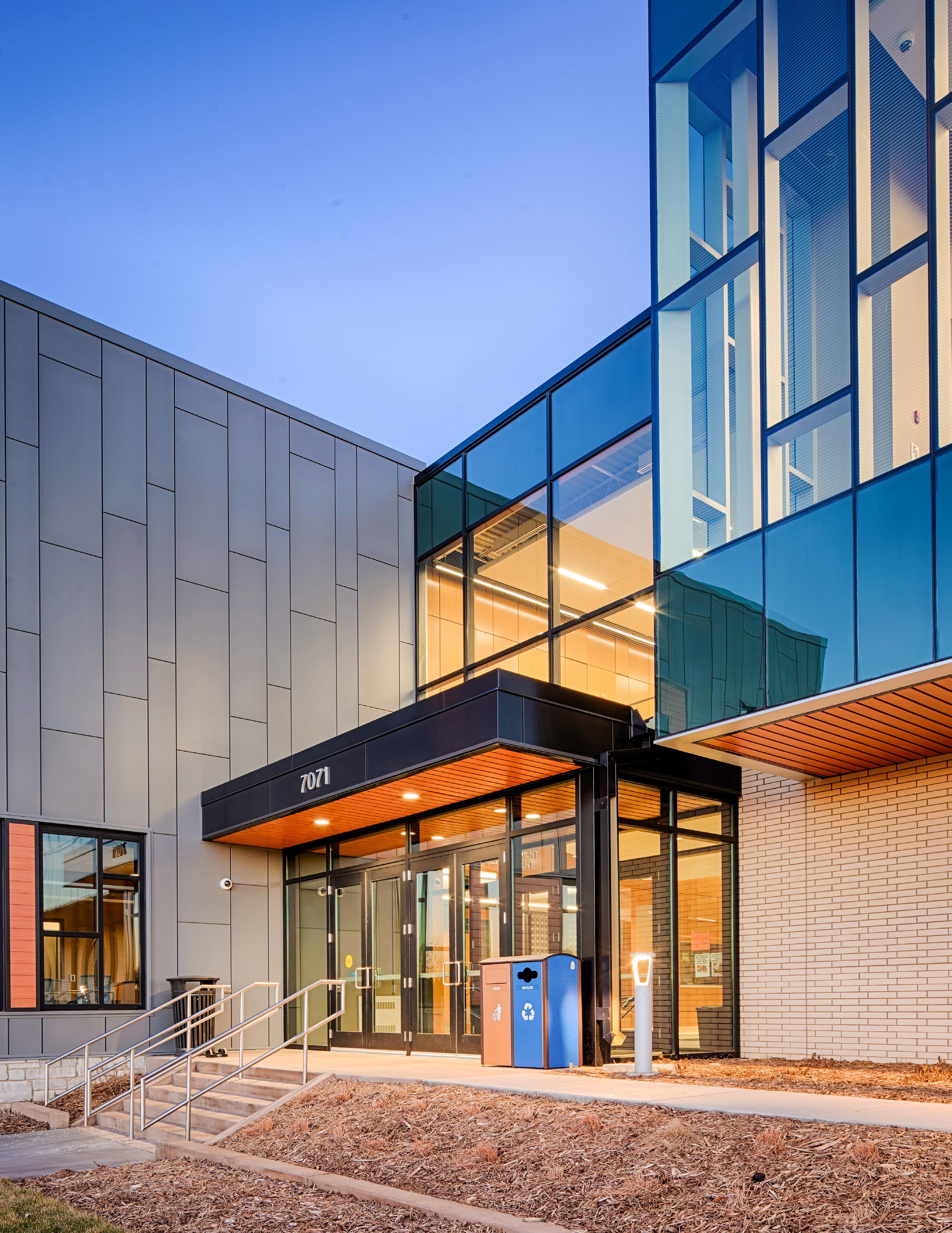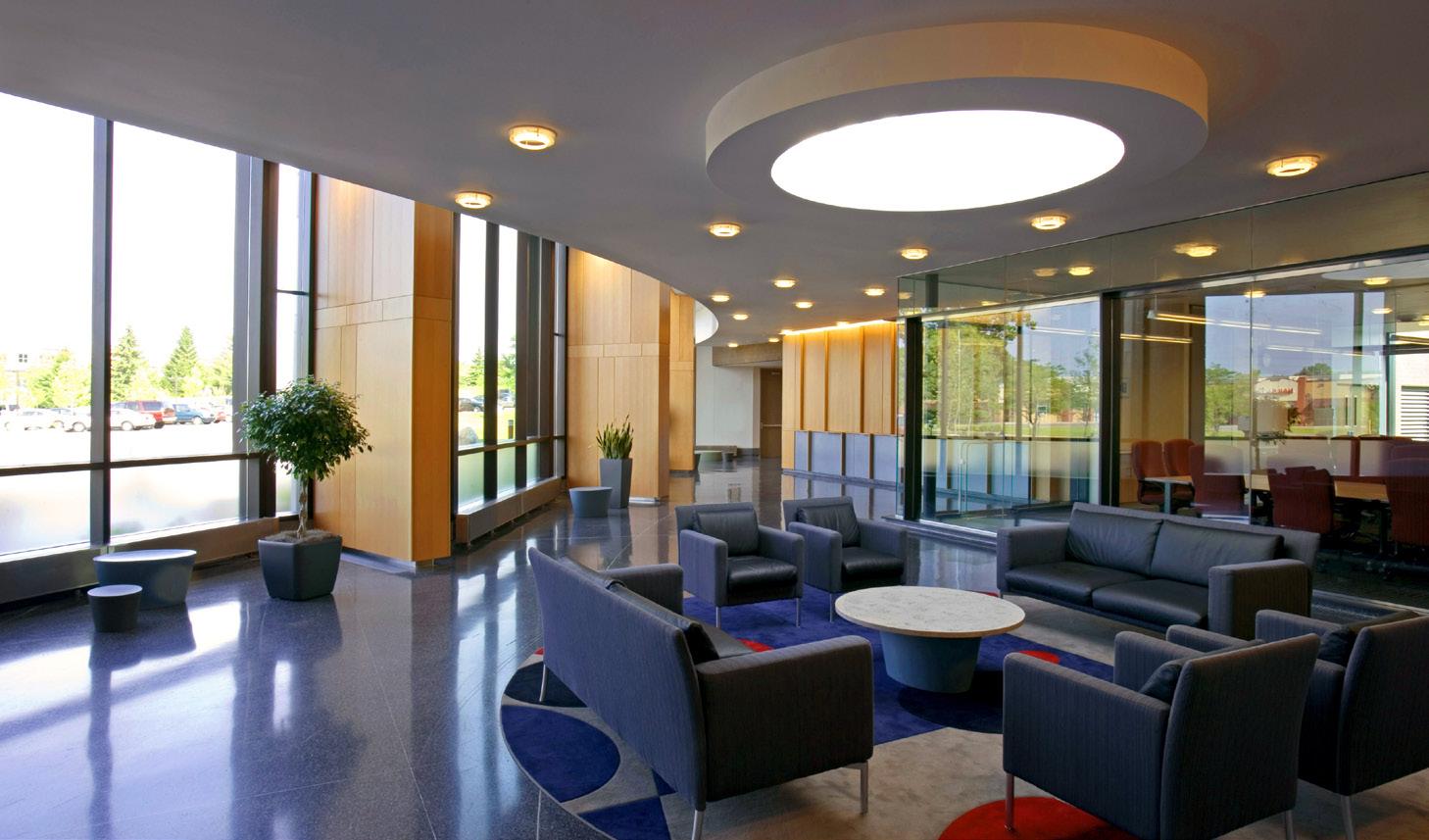 Extensive sustainable design and energy-saving strategies were incorporated in the project, including a geothermal HVAC system, daylighting throughout the regularly occupied portions of the building, on-site storm water treatment, and sustainable building material selection.