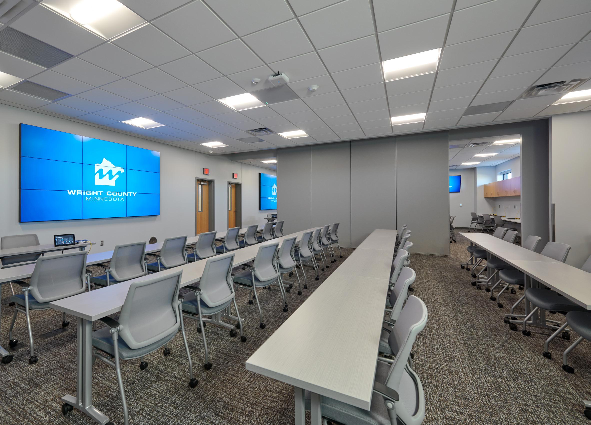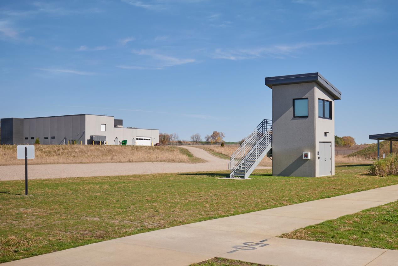 Through a joint venture between the Federal Bureau of Investigation and Wright County, this new facility includes a variety of essential services to support proper training practices for law enforcement agencies. Four groups of outdoor firing ranges are provided each with appropriate ammunition traps. The new site accommodates a 300yard sniper range, a 30-lane 50-yard pistol range, a 20-lane 50-yard pistol range, a control tower, and a three sided ‘primitive’ range. The new building includes an Emergency Operations Center, training/ classrooms, a use of force training room, a backup dispatch center for the County, locker rooms, vehicle parking and other associated storage. Space is being planned for 6 lane indoor firing range to be added in the future. The second floor of the building provides reconfigurable tactical training space that can be arranged in different ways to accommodate a wide range of active training scenarios.