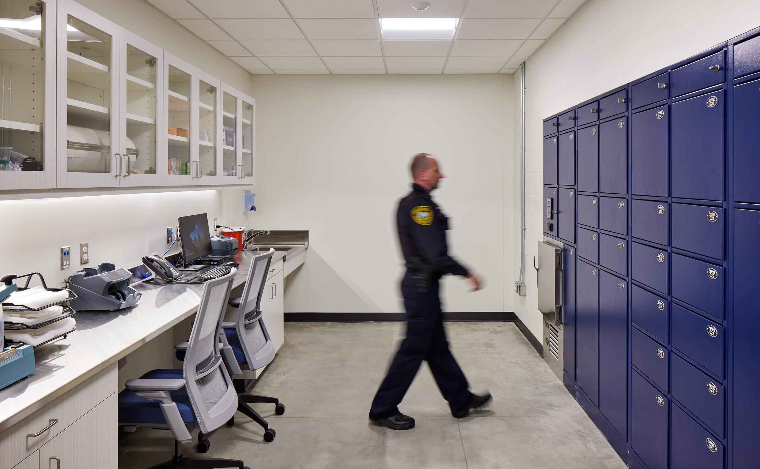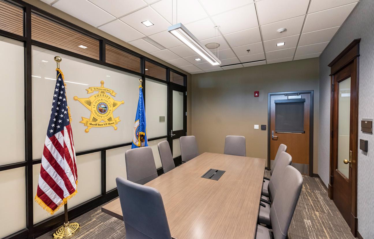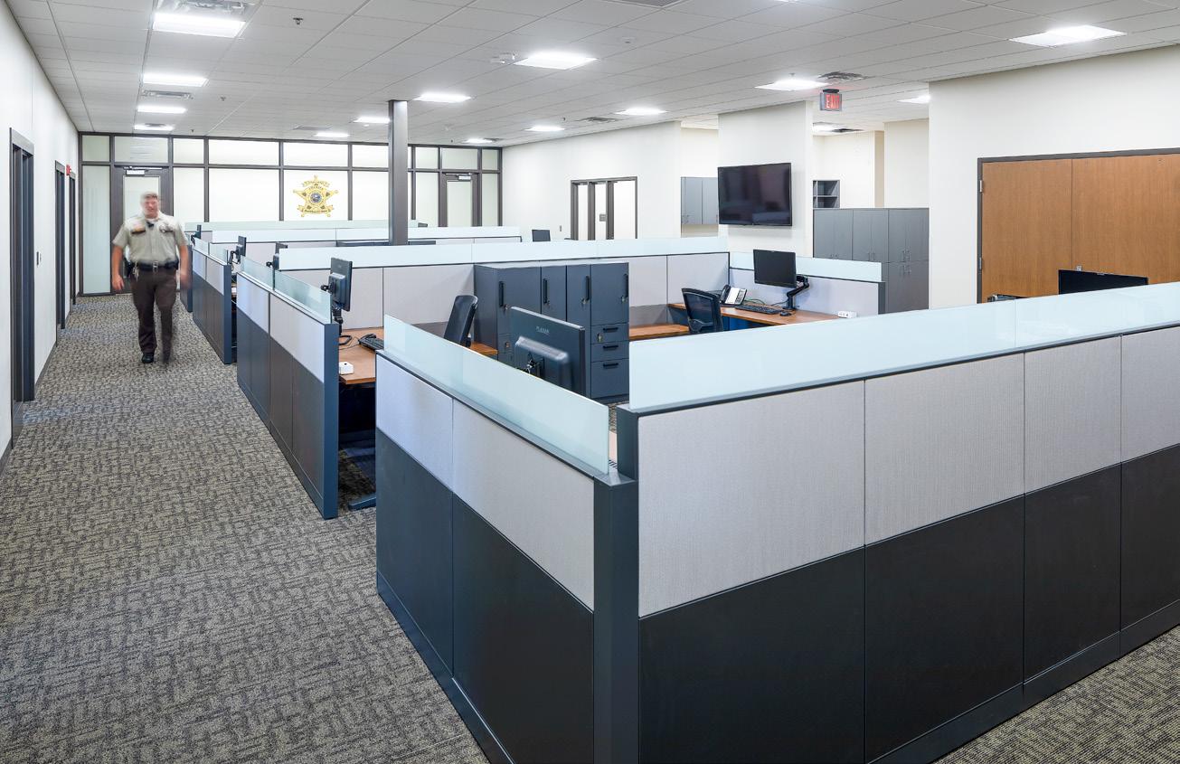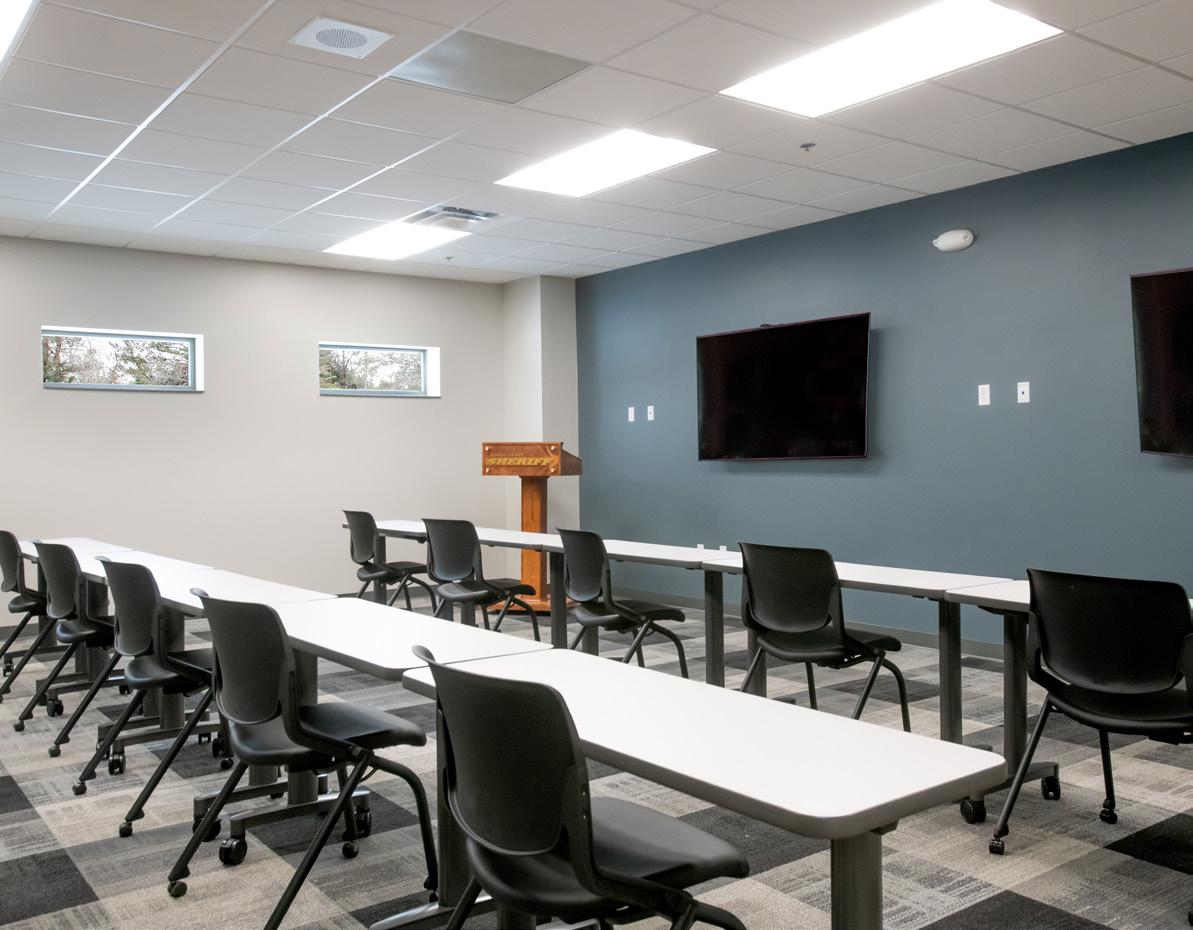 The Sheriff’s Office spans four stories, with the lower level serving as the entrance from the secured parking area. It includes shared spaces with the jail, such as the roll call room, locker rooms, outside laundry closet, fitness room, and fast access spaces for the patrol team, with direct access for staff to post in jail.