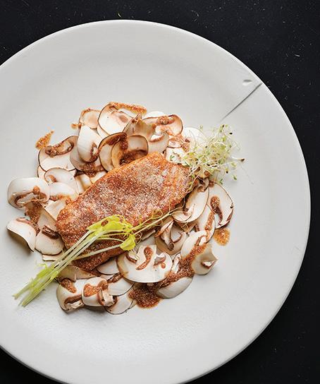 レストラン シェフ、ホセ・アンドレスが率 いるThinkFoodGroupが、ロ サンゼルスに新たなレストラ ン、San Laurelをオープンした。 メニューに並ぶのはセルリアク のカルパッチョなど、カリフォル ニアとスペインの味を融合させ た料理だ。テラス席からは、す ぐ目の前にウォルト・ディズニー・ コンサートホールが見える(右 写真)。sanlaurel.com ニューヨークのチェルシー地 区で10年以上にわたり地元の 人々に愛されてきたダイニング バー、Foragers Tableがパン デミックによる閉店を経て再 オープン(上写真)。エグゼク ティブシェフ、オリヴィエ・パラッ ツォによる旬の素材を使ったモ