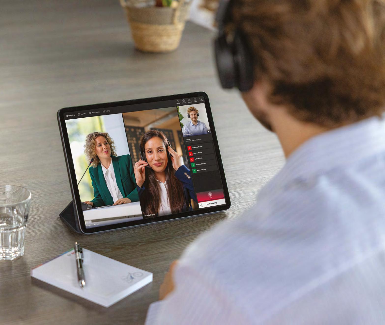 participants. Depending on the dynamics of the in-room conversation, the AI-powered capability switches between the room view and the close-up views of the speakers. The features included in the latest Smart Meeting Flows provide a more inclusive meeting experience for local participants. In addition, PresentSense is an ultrasound proximity detection for laptop meeting room connections, while HostFlow automatically guides participants at the start of a video