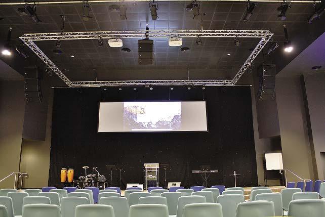 ‘We closed after the Christmas services, cleared the church and in the next three months all the work was done to open again for Easter Sunday,’ recalls Trevor Harvey, head of IT and A/V at the church. ‘It was ideal because it is a quiet time of the year, liturgically.’ Normal Sunday services were held in a nearby hall on a different part of the church campus. The technical side of the refurbishment was divided into different projects. SA Sound Services handled the audio portion and installed Tannoy VX8 speakers in pairs on the main pillars with VX6s covering the entrance. Power is via Lab.gruppen E8.2 amplifiers with control from a Soundcraft LX7/2 16 desk. A variety of handheld, headworn and lectern mics from the likes of Sennheiser and AKG serve