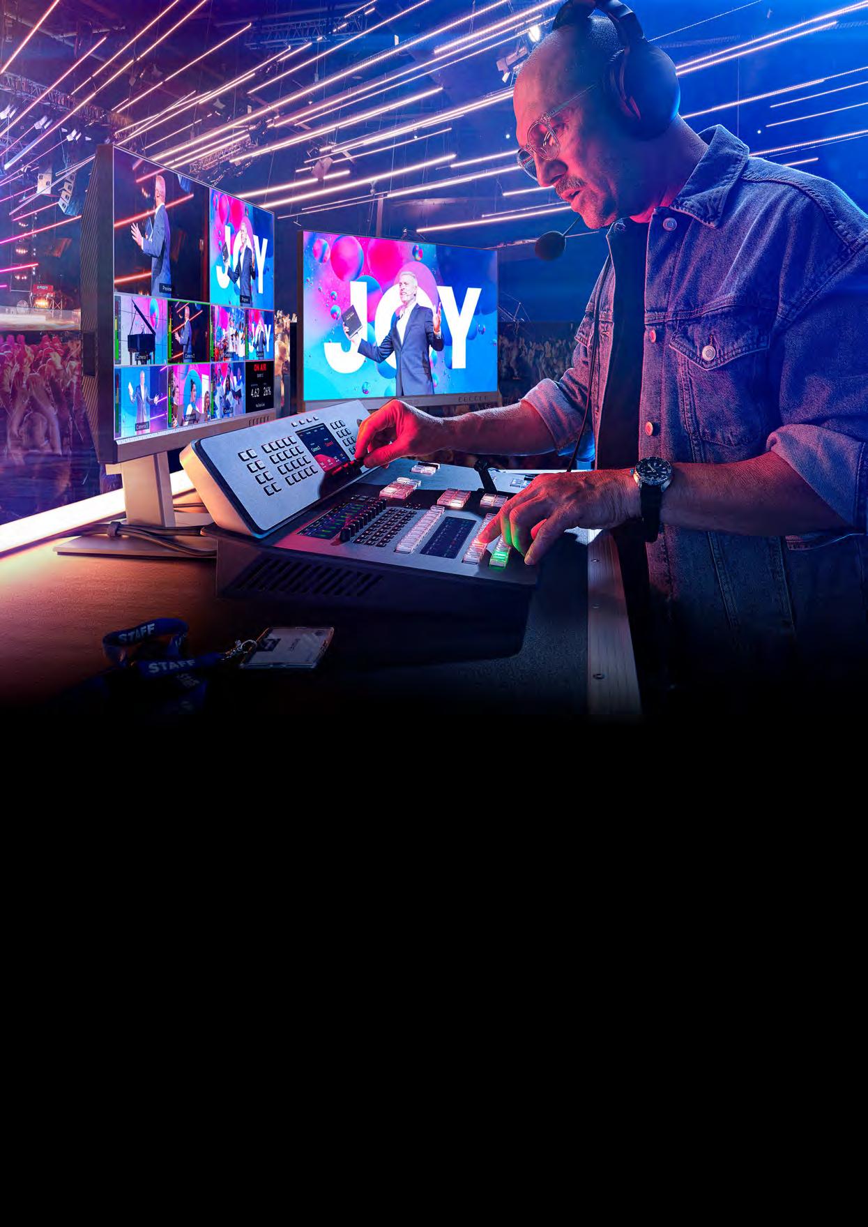 There’s never been a switcher that’s easier to use, as you simply press any of the program row buttons on the front panel to cut between video sources. You can select from exciting transitions such as dissolve, or more dramatic effects such as dip to color, DVE squeeze and DVE push. You can even add a DVE for picture in picture effects with customized graphics. Then you can live stream the results!