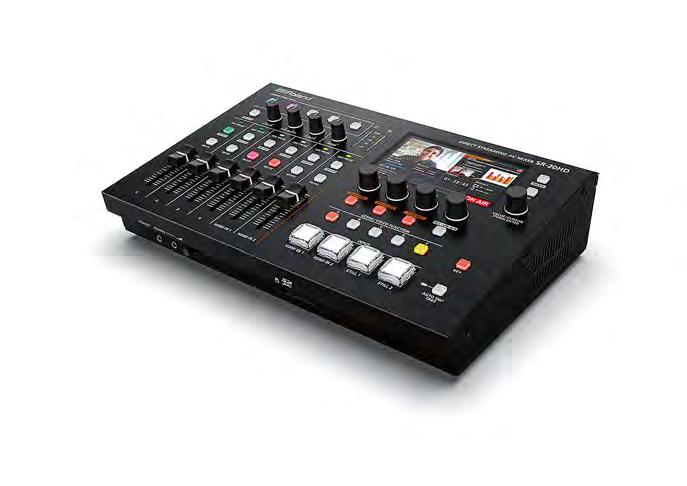 and video I/O, a large touchscreen and hands-on controls. The unit gives a single operator all the tools needed to manage any mid-level hybrid production. Advanced features simplify difficult tasks with customisable workflows, deep automation functions, remote PTZ camera control, one-touch macro sequencing and streaming over LAN and USB. The operator can assign sources to eight cross points on the fly – including live video inputs, still images and video clips – and prioritise cameras and