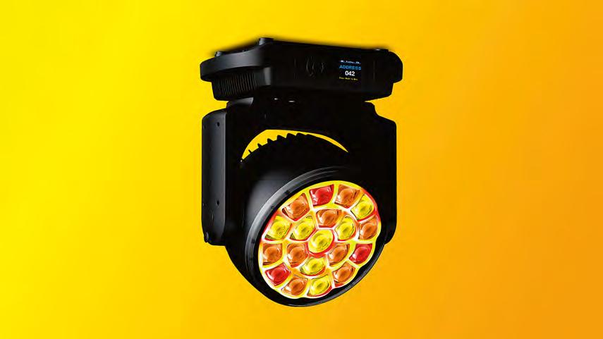 lightweight Rivale Profile is the latest addition to the company’s Classical IP65 3 Series. Punching above its weight with a 160mm frontal lens and a 450W highefficiency LED module, Ayrton says its high-definition progressive CMY colour-mixing system provides a perfect reproduction of pastel colours. A variable deep red channel optimises the colour rendering index at low levels and offers a progressive red with a high level of saturation. A progressive CTO and a seven-position colour wheel complete the palette of tools dedicated to colour.