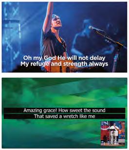 over video is useful when a single display needs to convey both text content (teaching material, song lyrics, announcements, etc.) and video imagery (such as IMAG or a particular scene). In streaming applications, remote worshippers get to watch the service only from a single screen, so it needs to simultaneously convey as much information or content as possible within a limited space and time.