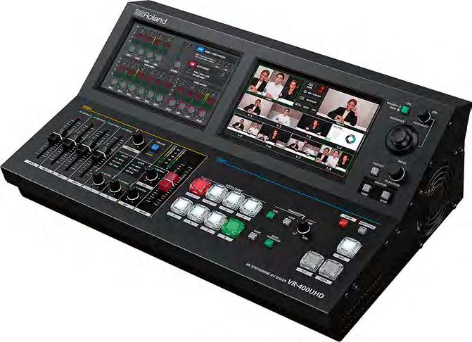 AV mixer is described by Roland as an easy-to-use 4K switcher that gives anyone the power to run a successful live event. With its two touchscreens, users can quickly set various scene presets, preview them in real time and confidently run transitions by knowing precisely what viewers will see in every instance. The VR-400UHD can preview eight scenes at once on the touchscreen and, with eight programmable scene banks, the switcher can hold up to 64 possible saved scenes, providing houses of worship with all the presets they may need for production.