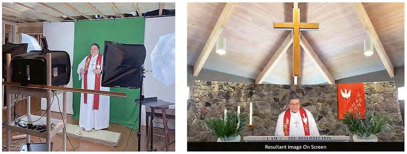� Chroma key – where “chroma” means “pure colour” and “key” is a technical term for removal – is a process of removing a particular pure colour from the image and then overlapping the resulting image on top of a pre-configured background image. Normally used in studio applications, it has become widely adopted for online worship services as it provides a means for the preacher and worship team to present from anywhere, even from their homes. All that is needed is a green or blue backdrop (colours that are furthest away from skin colour) and they can look like they’re ministering from the sanctuary.