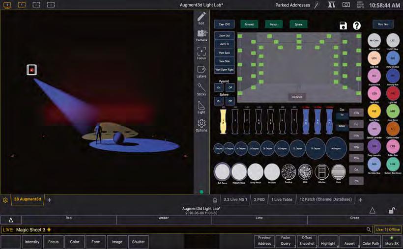 have also been brought into Eos and expanded to support configurations for dynamic and static systems, laying the groundwork for future system expansion. Updates include fixture-, deviceand session-level adjustment settings, as well as expansions in ETC’s built-in Augment3d programming environment. Augment3d now include a Zones feature which provides the ability to define regions in the 3D model space and automatically affect fixture behaviour when they intersect with the zone. This functionality extends to attaching a Zone to a moveable element to allow it to affect the behaviour of static fixtures as well as movers.