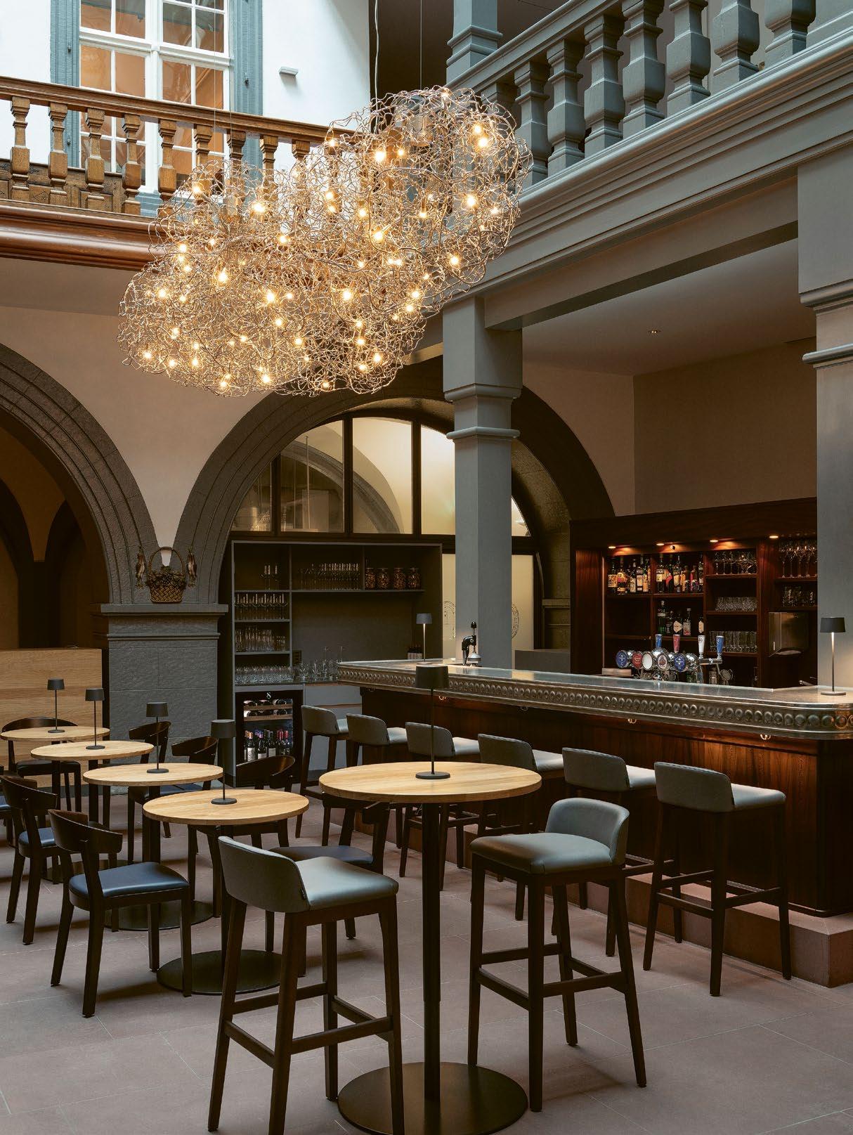 zösischen Bar und ist ein Entwurf der Architekten. Über allem schwebt eine filigrane Lichtskulptur, ein Geschenk der befreundeten Zunft zu Hausgenossen; auch sie wurde mit heutiger Technik ausgerüstet. Das räumlich, aber nicht optisch abgetrennte Bistro lässt keine Wünsche offen, als Spezialitäten gelten die Tapas. Auch im Zunftsaal im Obergeschoss wie der Vorgesetztenstube wurde sachte renoviert. Die Böden wurden restauriert, die bildhaften Meisterwappen aufgefrischt.