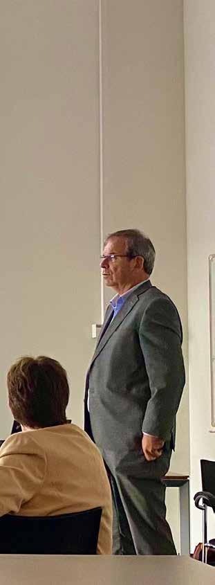 BCMW leden in het nieuwe pand van EAZZ Bestuurslid Bea Janssen Steenbergen neemt afscheid Hermann van der Steen demonstreert Respect voor vakwerk met hout
