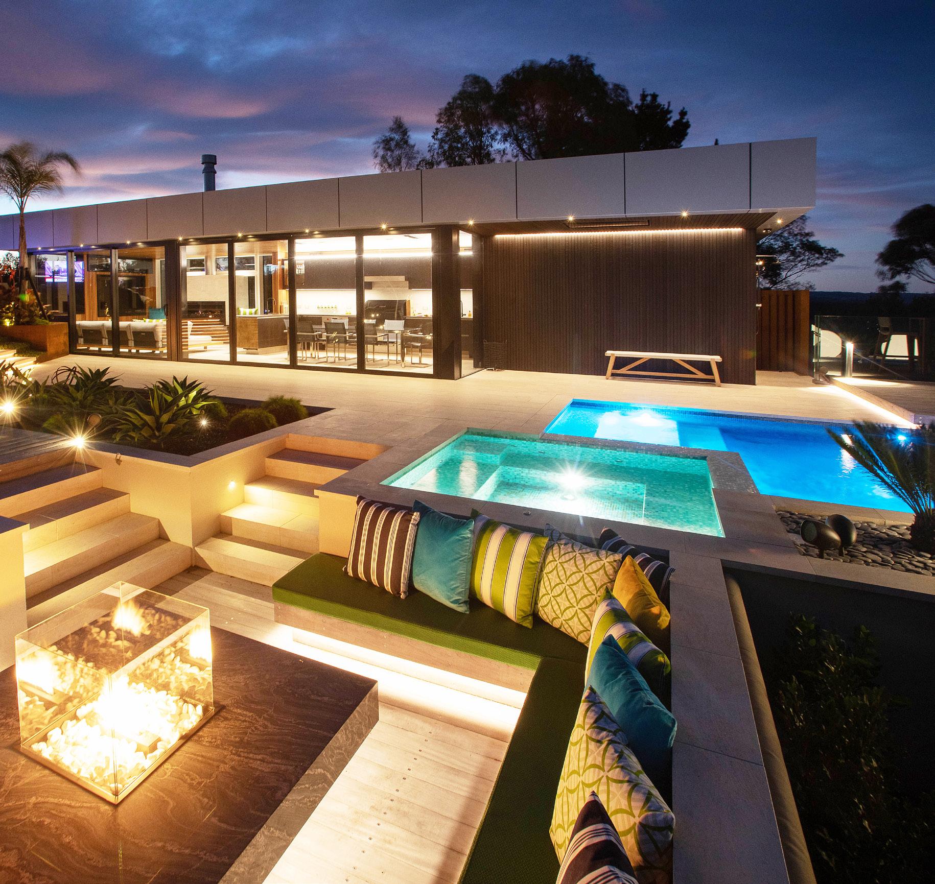 An expansive multi-level outdoor area required significant earthworks to accommodate an infinity pool, spa, courtyard and conversation pit with a dazzling glass-encased fire. There’s also a second alfresco seating area in front of an Escea fireplace.