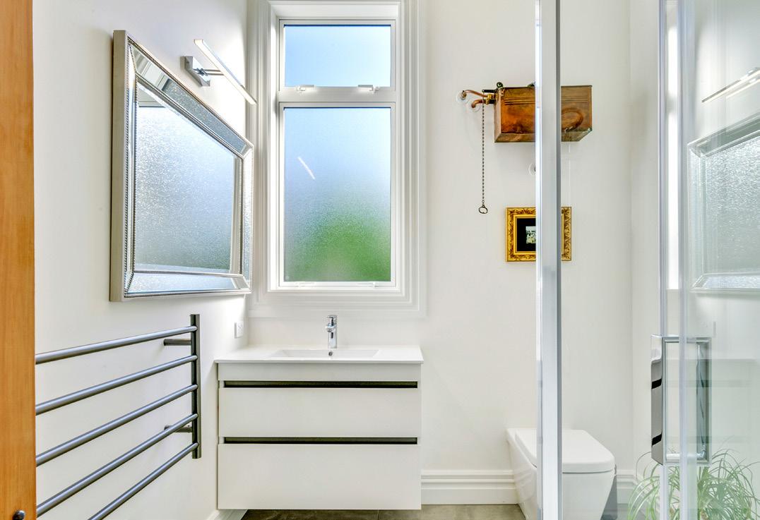 The renovation involved reconfiguring rooms, including converting a bedroom into a main suite with walk-in robe and ensuite. The kitchen was moved and expanded, and this and the main bedroom were given doors leading to a hardwood deck. New plasterboard and paint make the interior feel fresh, but these haven’t come at the expense