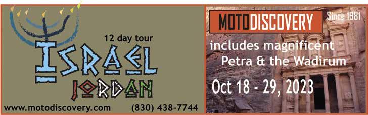 www.suburban-machinery.com 1-440-951-6555 TOUR NEW ZEALAND "...the best place on Earth to ride a bike" – UK BIKE magazine ADVENTURE NEW ZEALAND MOTORCYCLE TOURS AND RENTALS P.O. Box 674 Nelson, New Zealand Tel: +64 21 696 071 Fax: +64 3 5485783 Email: mctours@gotournz.com www.GoTourNZ.com Guided & Self Guided Tours, Off-TheBeaten-Track Tours, Rental, Buy Backs. BMW OWNERS NEWS | July 2023 78