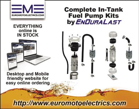 Molyoil ‐ oil, fuel & air filters – 12/24K maintenance kits – brake pads & rotors – fuel pumps – Hall sensors – repair manuals & dvds–tools – fuel line disconnect sets – fuel injection controllers – exhausts – batteries & chargers –master cylinders & rebuild kits – starters – spark plugs & wires – cables – radiator fans – alt belts – fender extenders – Carbtune carb/TB synchronizers
