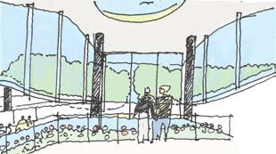 M ReSTAuRAnT (First Floor) This-state-of-the-art facility will incorporate locally grown food into the menu to enhance the connection to the local economy and environment. The partnering of a Culinary Arts Institute with the restaurant could provide training for local students and community members in the art of cooking with locally grown produce.