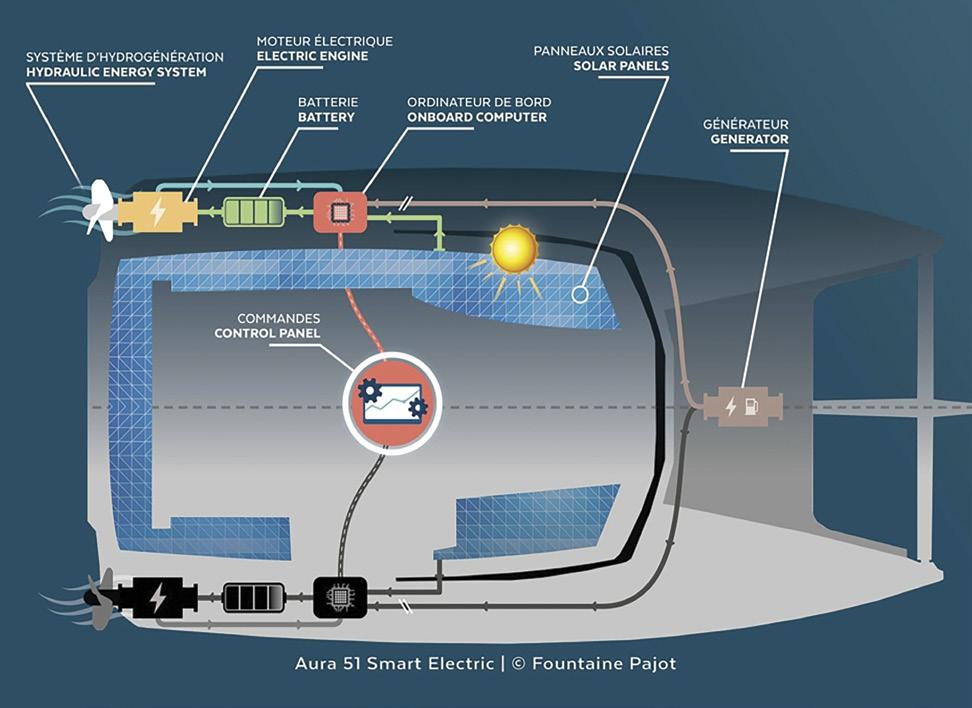 are managed from a single console, designed by the Fountaine Pajot team to deliver a simple user experience. The system they have developed ensures that using renewable energy is always a priority.