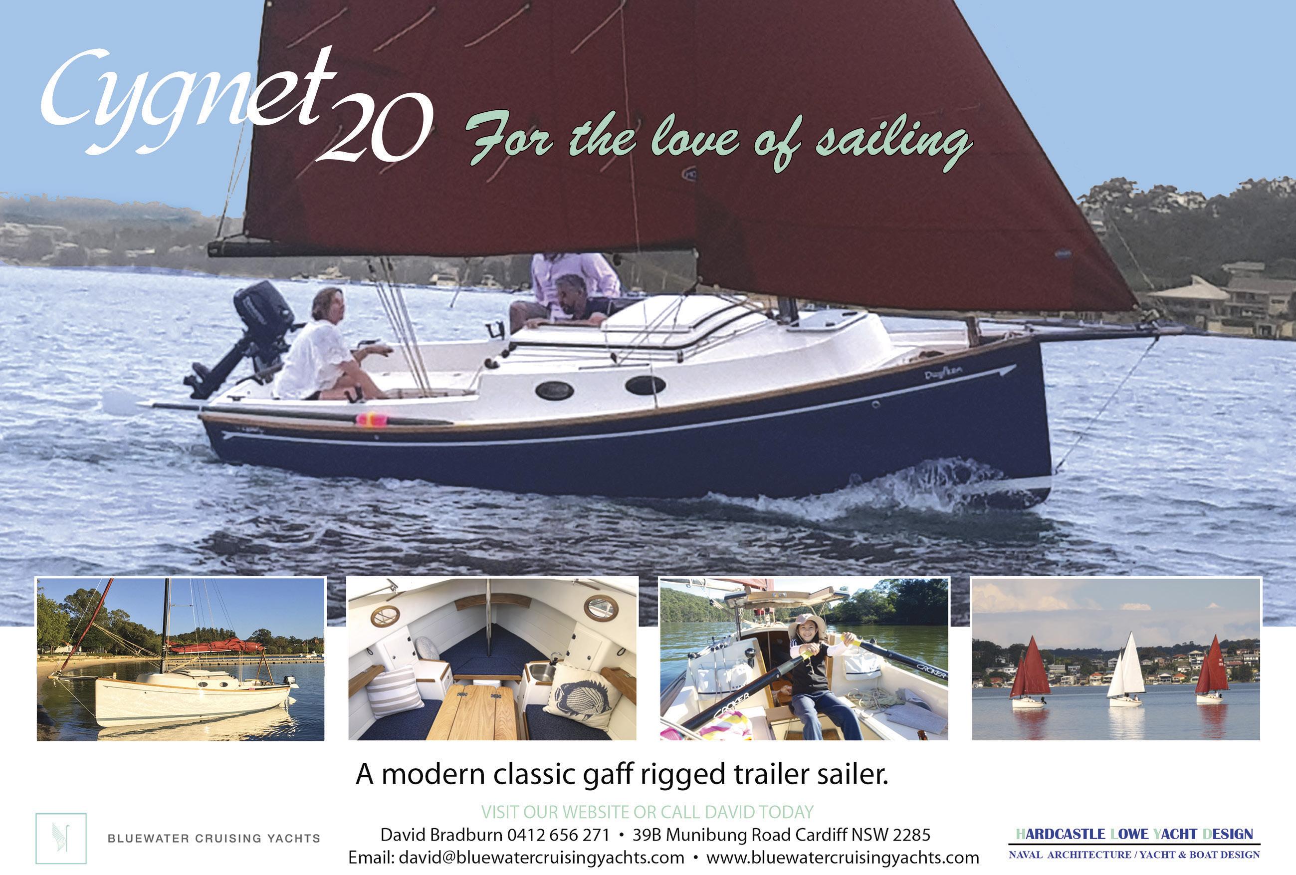 Become a part of our Gaff Association and join in for short, fun races, pretty anchorages, and sharing stories and adventures with other Cygnet 20 owners … why wait? Join our newsletter at www.bluewatercruisingyachts.com