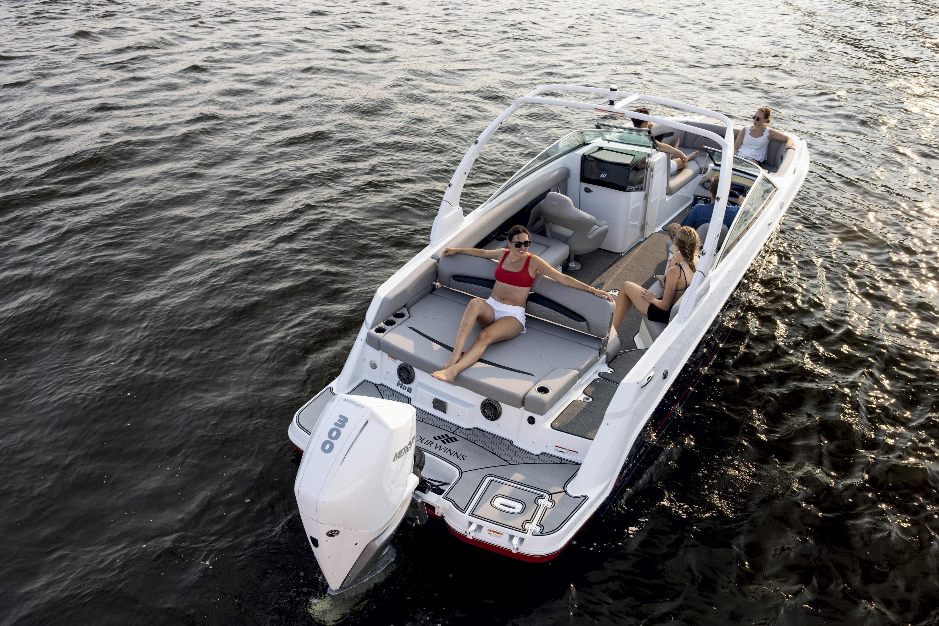 This boat creates a really casual place to hang out on the water; it looks cool, performs superbly, and accommodates the most discerning boaties and their passengers.