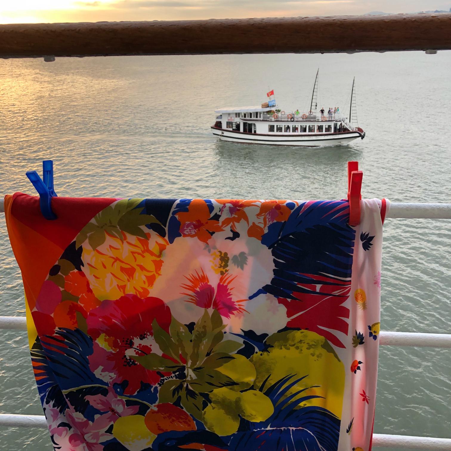 After the swimmers have finished frolicking, climbed onto the swim deck and towelled dry, they depart for their cabins to shower and change.