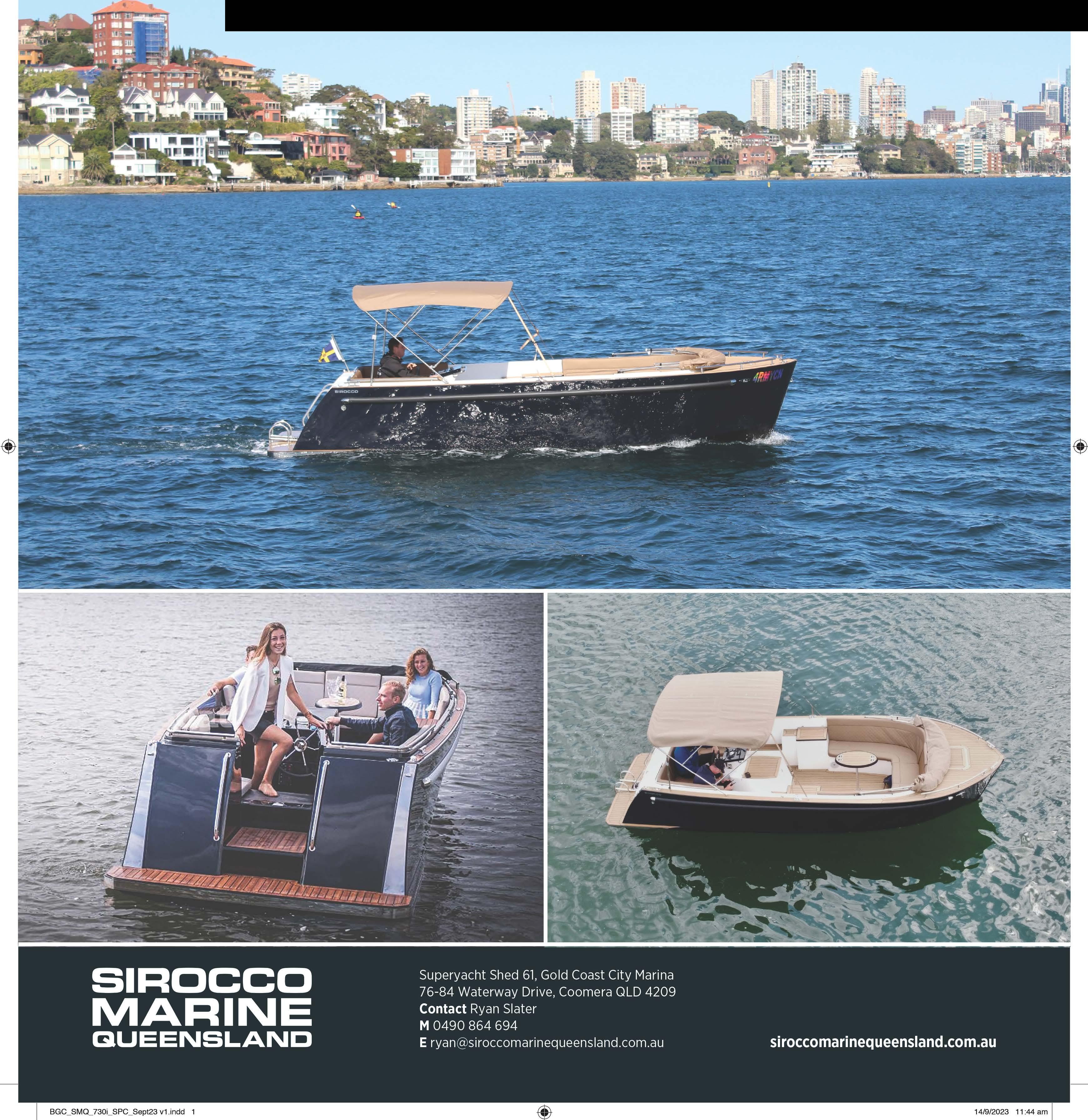 Stylish, spacious and totally unique, the Sirocco 730i is striking a chord with boat owners seeking lowmaintenance, fuss-free boating.
