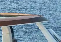 ~ FLYBRIDGE | On a luxury catamaran of this size, the flybridge takes on the mantle of an extra deck, and the new 80 exploits this possibility to the full. Beneath a hard-top bimini, two fullyequipped helm stations occupy the forward part of the deck. All the control lines come back to a central winch and two lateral sheet winches. This zone is completely dedicated to sailing manoeuvres. Further aft, the real story is the elegant wrap-around sofa, fridge, and full wet bar, as well as a plancha grill.