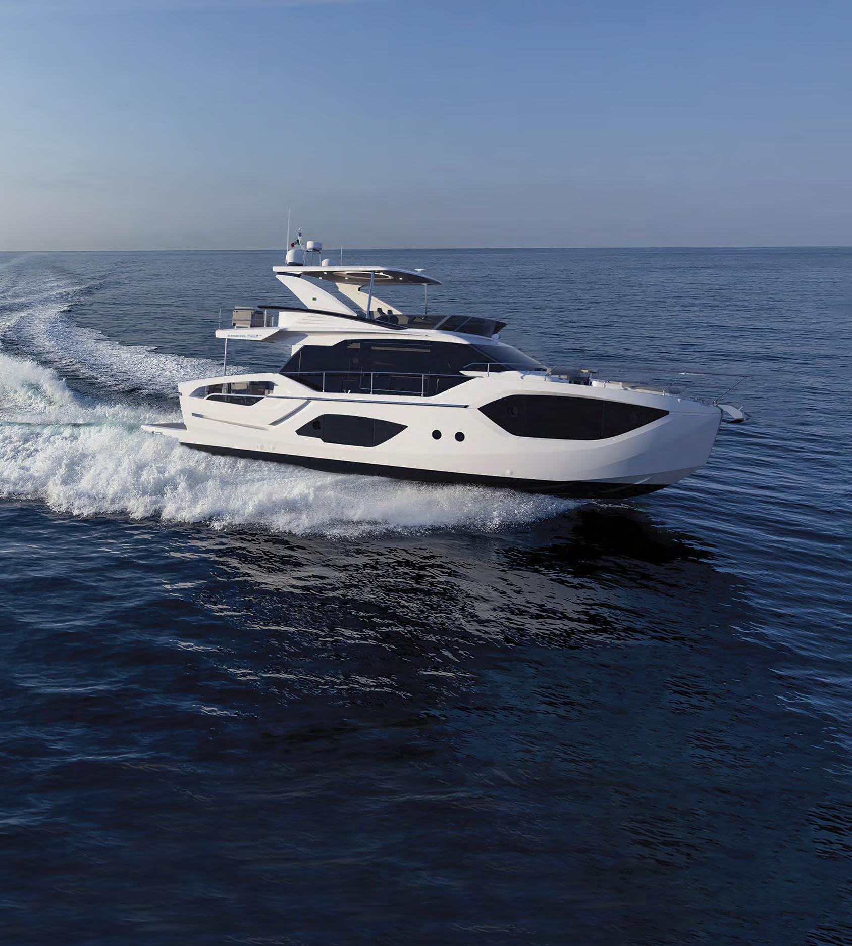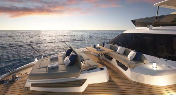 Other notable features are the helm side door for optimal vision and convenient access to the wide walkaround decks, and the topside door for easy boarding onto the boat from a marina berth.