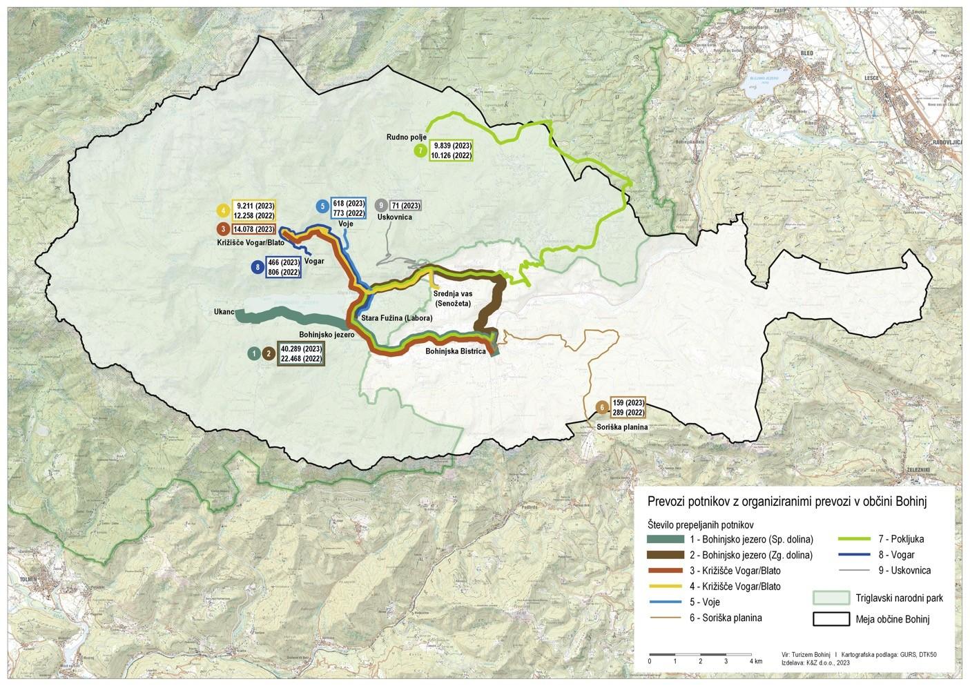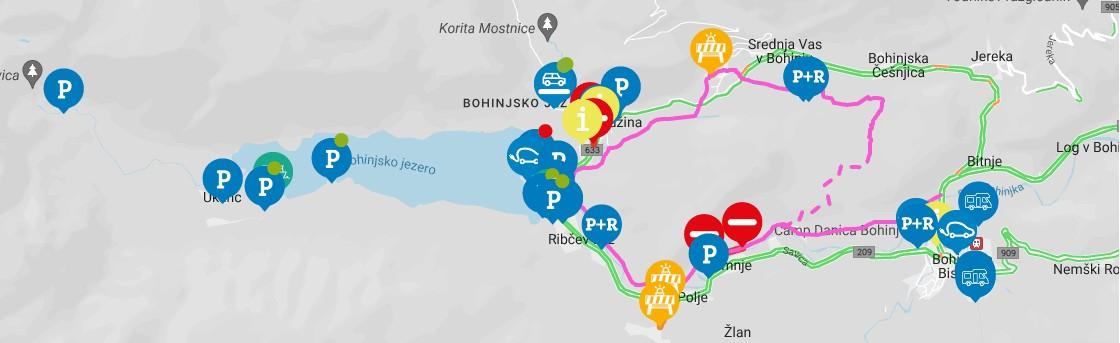 (cesta Ribčev Laz-Ukanc-Savica = kontroliran / omejen dostop za osebna vozila)