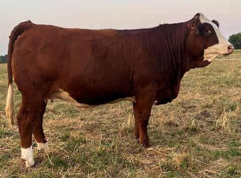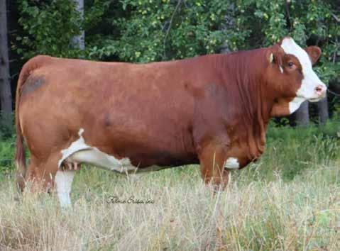 Mostly Foolin 110M provient d’une de nos familles de vaches préférée, les Fools, descendant de l’excellent troupeau de Todd Simmental. Née à la fin février, cette taure continue de se démarquer parmi son groupe malgré son jeune âge et les conditions de pâturage moins favorables des derniers mois. Provenant majoritairement d’une famille de Simmental noir, cette taure ainsi que sa mère ont décidé de se démarquée en ajoutant une touche de rouge l’arbre généalogique. Regardez son pedigree et nous vous promettons que vous ne serez pas déçus : National, Lotto et Trademark offrent de multiples possibilités à vos croisements futurs. Nous vous offrons l’opportunité d’acquérir une taure issue d’une famille de vaches reconnue pour sa longévité ; sa grand-mère de 14 ans produit d’ailleurs toujours autant et continue de se pavaner dans le pâturage comme une jeune vache de 4 ans. Nous sommes convaincue que Mostly Foolin suivra ses traces.