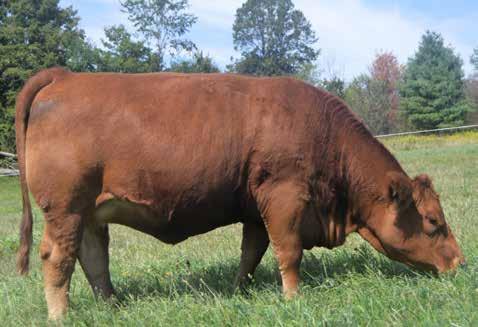 This fall born heifer will be 2 yrs old at sale time giving her a little extra age and growth. She now shows a lot of extra muscle expression getting her thickness from Canelo, a full brother to Spartacus. She is solid coloured from head to tail. No white anywhere on that body only the bottom of legs which is rare for a FF, for those looking to darken up those hides. She is more of a Bourbon brown than Cherry red. 15L is the first solid coloured FF I have raised.I sold her mother as a bred many years ago but was lucky enough to buy her back when Randy Wheeler offered her up during Covid. On the bottom side of the pedigree we see 4B still producing, a King Arthur daughter out of Ross Small’s 666 Felise cow.