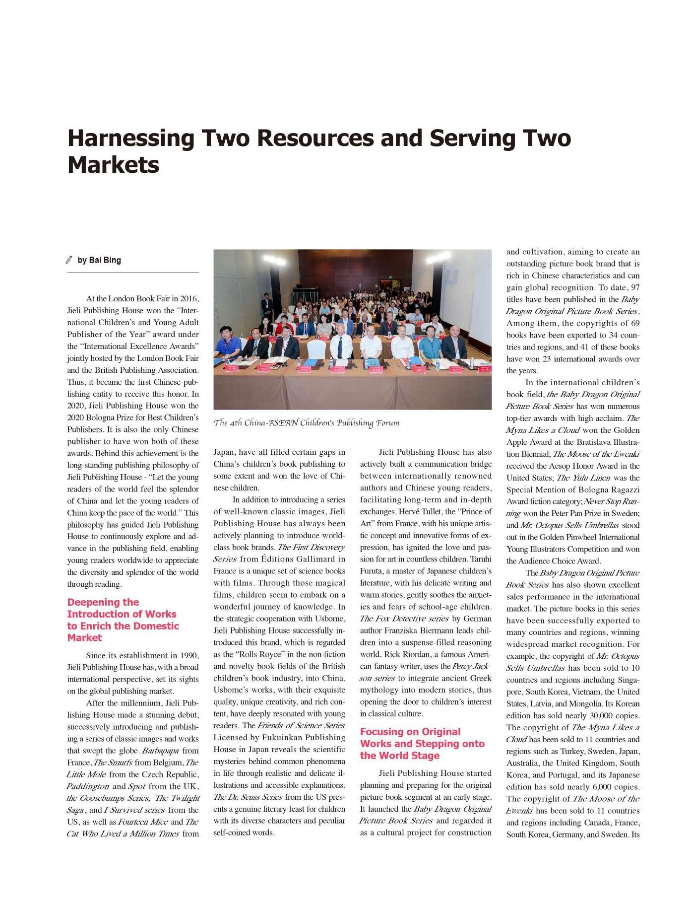 In 2024, HJC expanded beyond traditional copyright sales, adopting co-publishing models to reduce costs released 18 titles, including China’s IntangibleCulturalHeritage (Brazil, Italy), TangSulan’sPicture Books (Italy), TheFloatingHouse