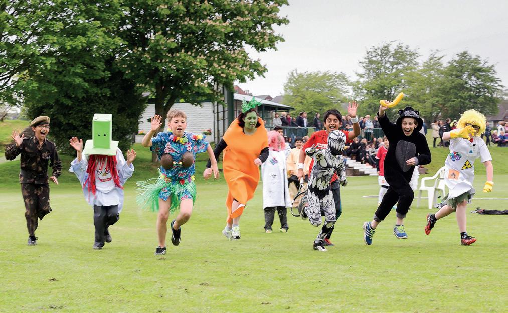 The Fun Run was once again a highlight of the year. Despite leaden skies, pupils and staff did not allow their enthusiasm to be dampened. There was a brilliant atmosphere with parents cheering on the boys as they completed as many laps of the Senior School track as they could manage in pair relays. The variety of costumes was as wide as ever: superheroes, pirates, members of the armed forces, fruit and vegetables, and even a pair of Bolton School Junior Girls! The event raised a spectacular £5,653.10 which was split between Cancer Research UK and Derian House.