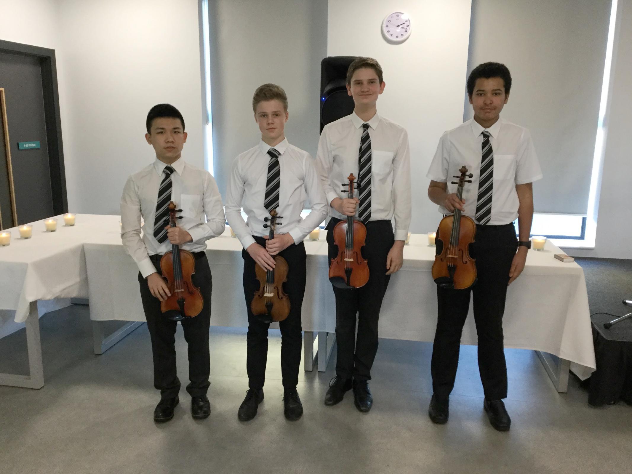 The service began with the Boys' Division Violin Quartet (consisting of Victor Chow, Adam Whitmore, Jonny Shine and Nathan Burudi) playing the Theme from ‘Schindler's List' by John Williams and after the candle lighting ceremony, the quartet played Andante Religioso by Josef Bloch. This was followed by a number of poignant readings presented by pupils from other schools and the religious leaders.