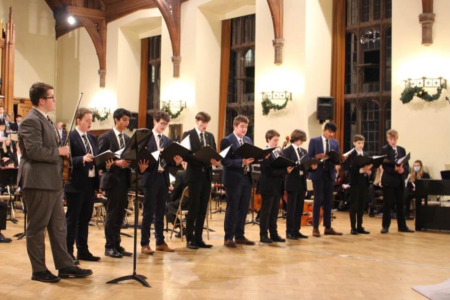 The Boys’ Chamber Choir, accompanied by Harry Adams of Year 11 on violin, sang A Gift for the King before the audience was on its feet again to lend their voices to See Amid the Winter’s Snow. The School’s joint Chamber Choir sang an atmospheric version of Carol Ann Duffy’s words Mirabile Dictu and the second reading came from Year 8 pupil Antoine Jodeau reciting Luke 2: v1-7. The reflection ‘Day to Remember’ was read by Levi Higham from Year 11.