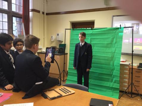 of what the boys have been involved with in School. (top left - bottom right) Student-led dance routines at ‘Wonder’ rehearsal, Year 8 SPACE trip to Bolton Steam Museum, using the new ‘green screen’ at Animation Club, discussing ‘A Clockwork