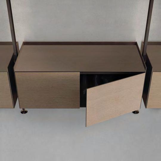 struttura/structure: 206 bronzo graffiato frontali/fronts: 701 rovere taiga piano interno in similpelle/synthetic leather internal door cladding top: 154 argilla schienale interno/back internal: 68 specchio grigio