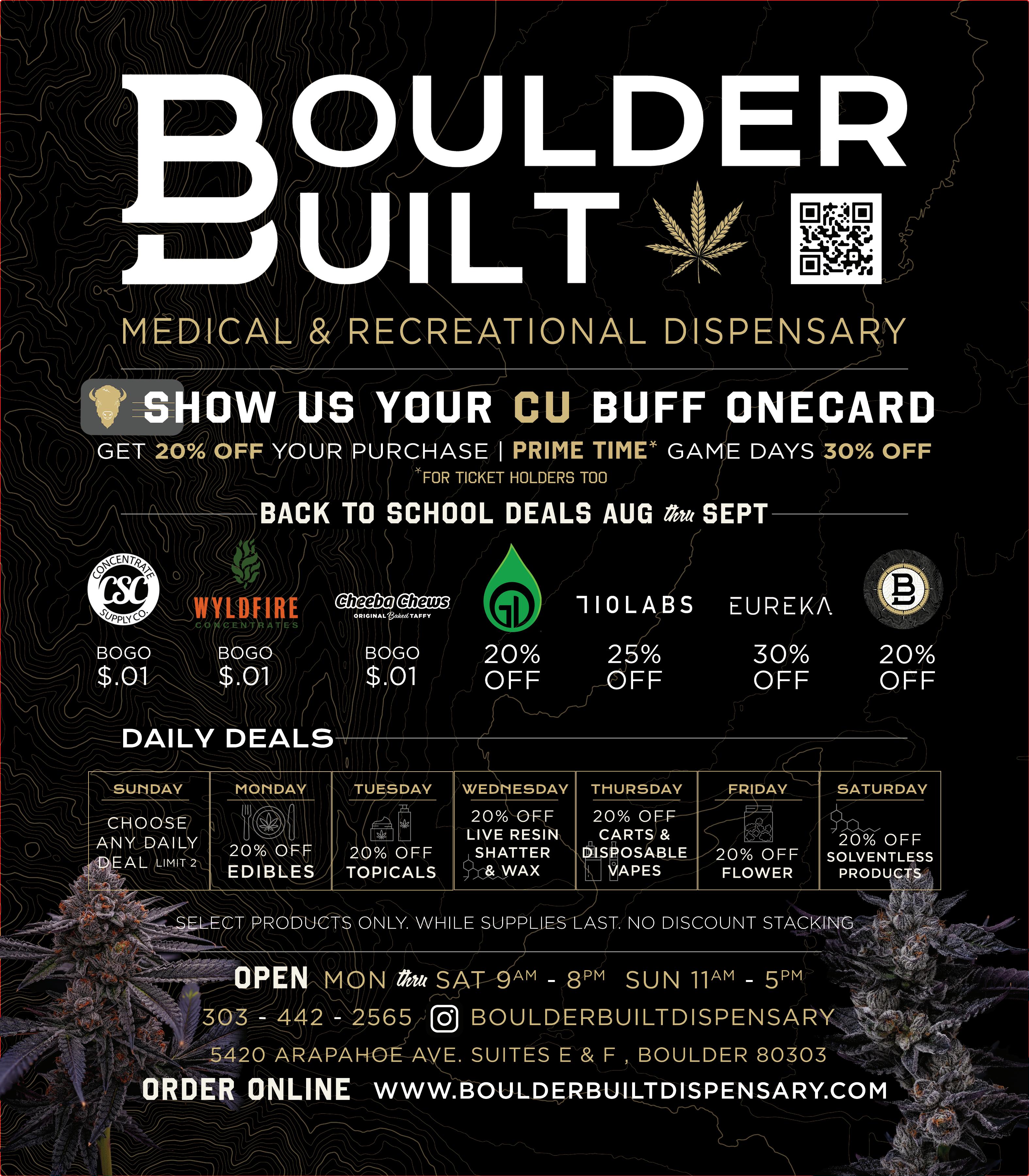 As Boulder County’s only independently owned newspaper, Boulder Weekly is dedicated to illuminating truth, advancing justice and protecting the First Amendment through ethical, no-holds-barred journalism and thought-provoking opinion writing. Free every Thursday since 1993, the Weekly also offers the county’s most comprehensive arts and entertainment coverage. Read the print version, or visit boulderweekly.com. Boulder Weekly does not accept unsolicited editorial submissions. If you’re interested in writing for the paper, please send queries to: editorial@ boulderweekly.com. Any materials sent to Boulder Weekly become the property of the newspaper. 1495 Canyon Boulevard, Suite CO 1, Boulder, CO 80302