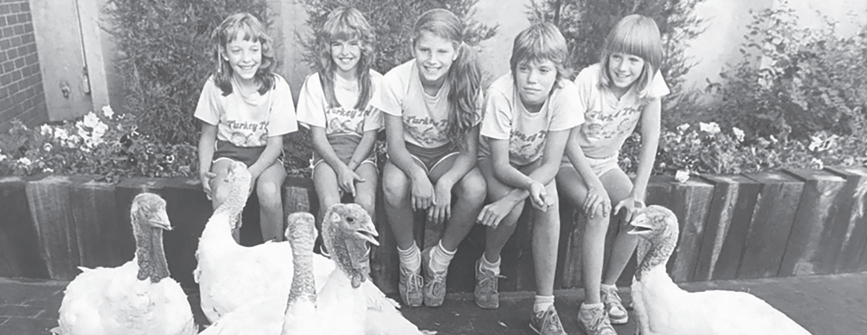 From left: Anne Jackson, Melissa Duncan, Anjanet Shafer, Jenny Stapleton and Dina Huber visit the turkey farm at Longmont Foods in October 1982. Courtesy: Longmont Museum Saul, the world’s largest sticker ball.