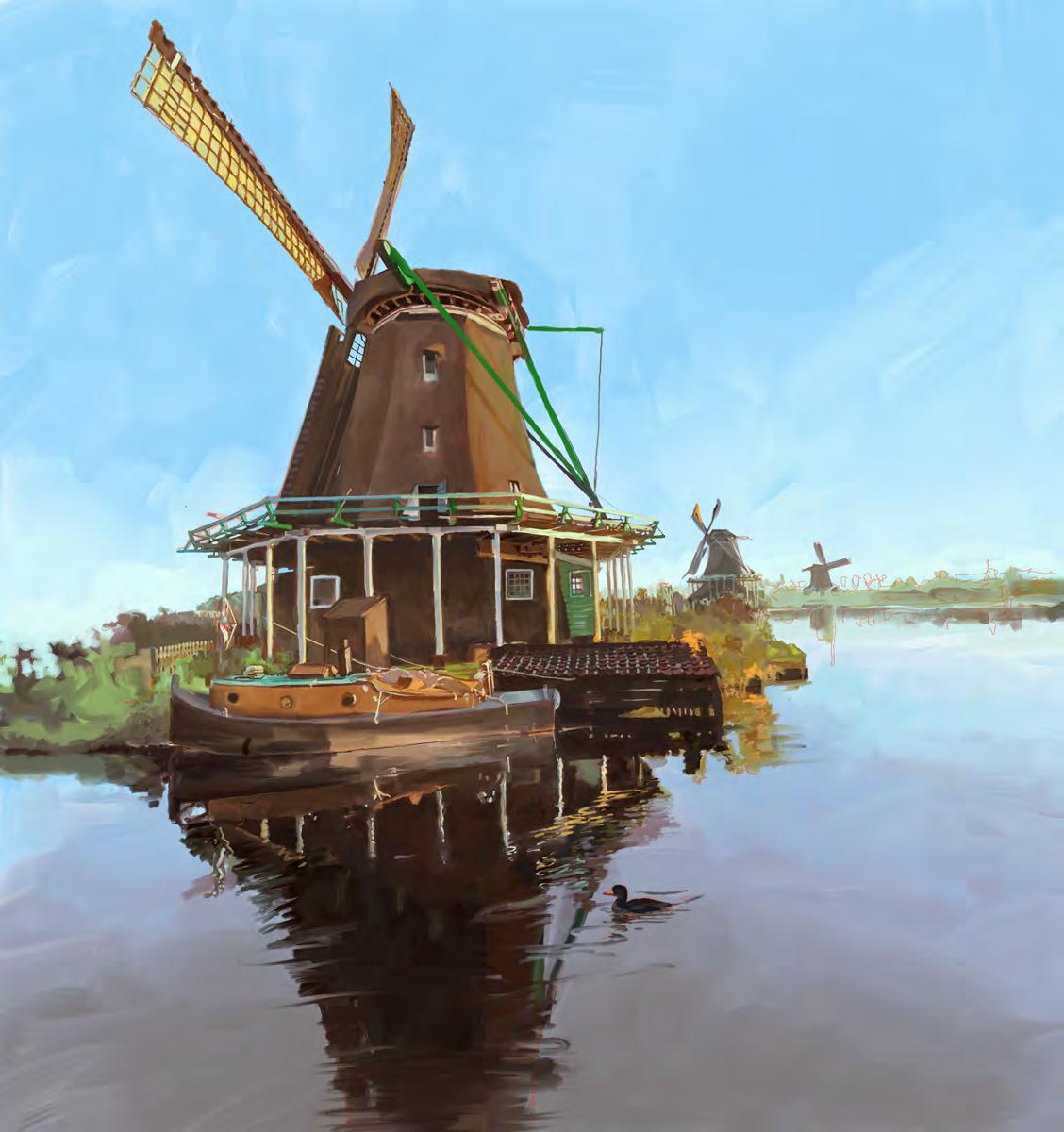 Leaving our bikes, we gathered below one of these windmills. It had a thick brown tower and splashes of bright green, red and white paint. Each blade flashed yellow as it turned and caught the sun. A matching brown, green and white wooden boat sat directly beneath it, and the entire visage was reflected in the water between the windmill and the small strip of sand, where we stood at the water’s edge. A picture-perfect reflection.